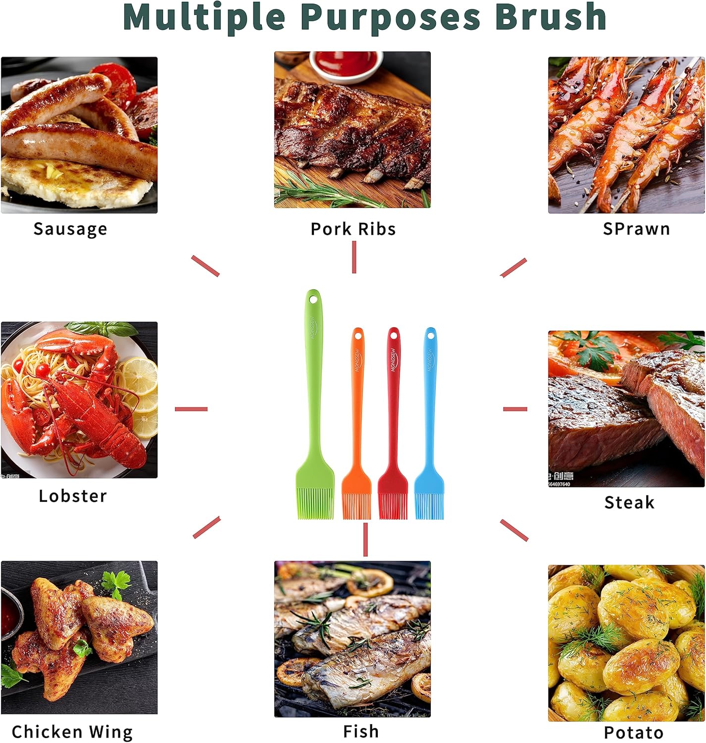 - 5. WHAT YOU GOT: 10.3 inch green silicone brush, 8.2-inch Blue, Orange, and Red silicone brushes and friendly customer service. Our 4pcs basting brush for cooking makes an ideal gift for cooking enthusiasts, grill masters, and those who appreciate culinary excellence. It's a must-have addition to any kitchen, allowing them to elevate their cooking game and impress guests with delicious, perfectly basted dishes.