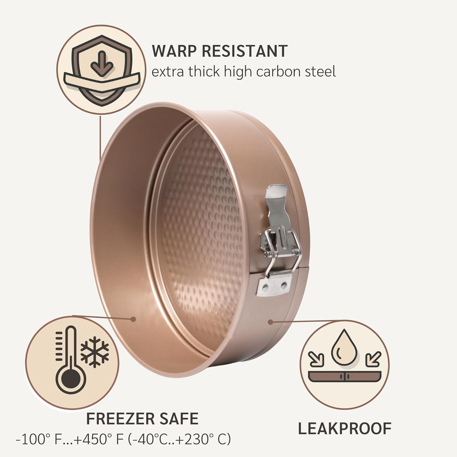 - ๐ We know our way around the cake - these non stick spring form pans for baking are best gift for bakers. HAPPIELS elegant champagne gold nonstick round cake pans are not only lovely to look at, they are top quality and bake like a dream.