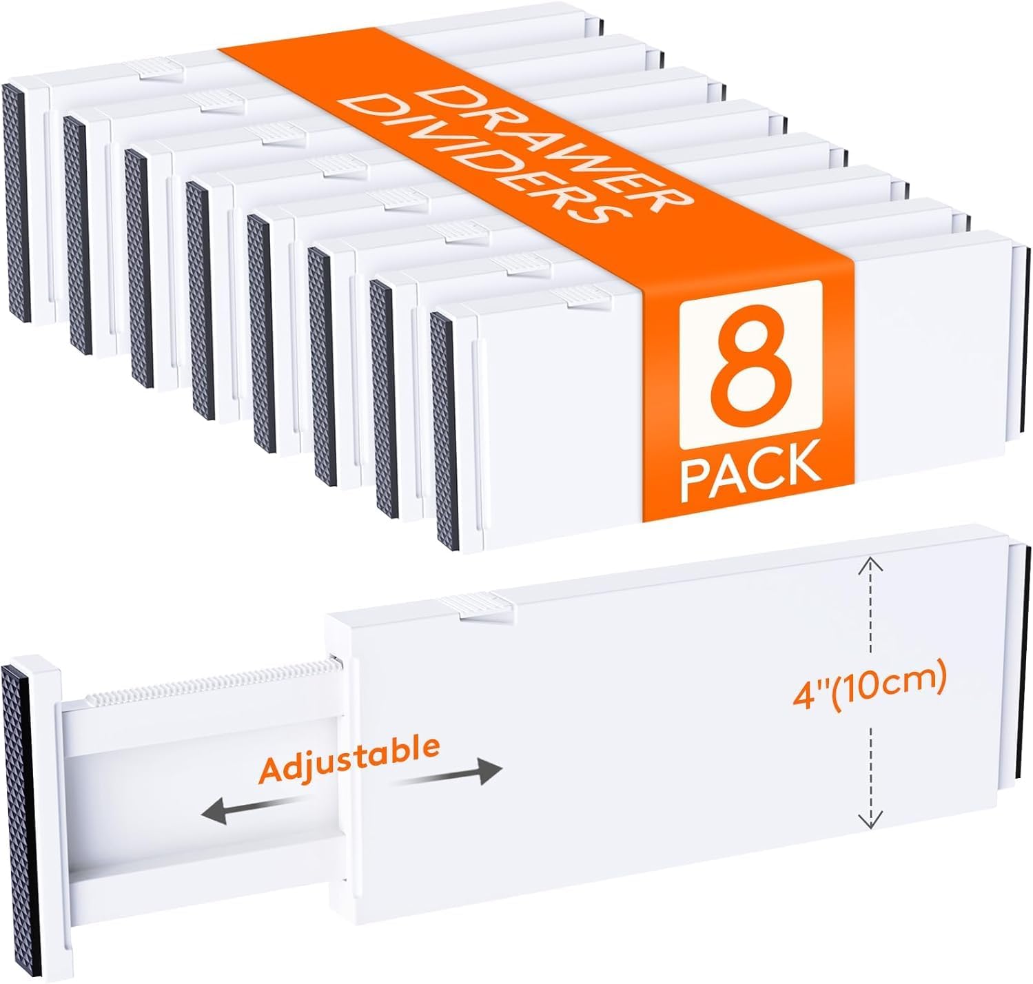 Lifewit 8 Pack Drawer Dividers 4" High,11-17" Adjustable Dresser Drawer Organizers for Clothes, Expandable Dresser Separators in Bedroom/Bathroom/Kitchen/Vanity/Office Organization and Storage, White
