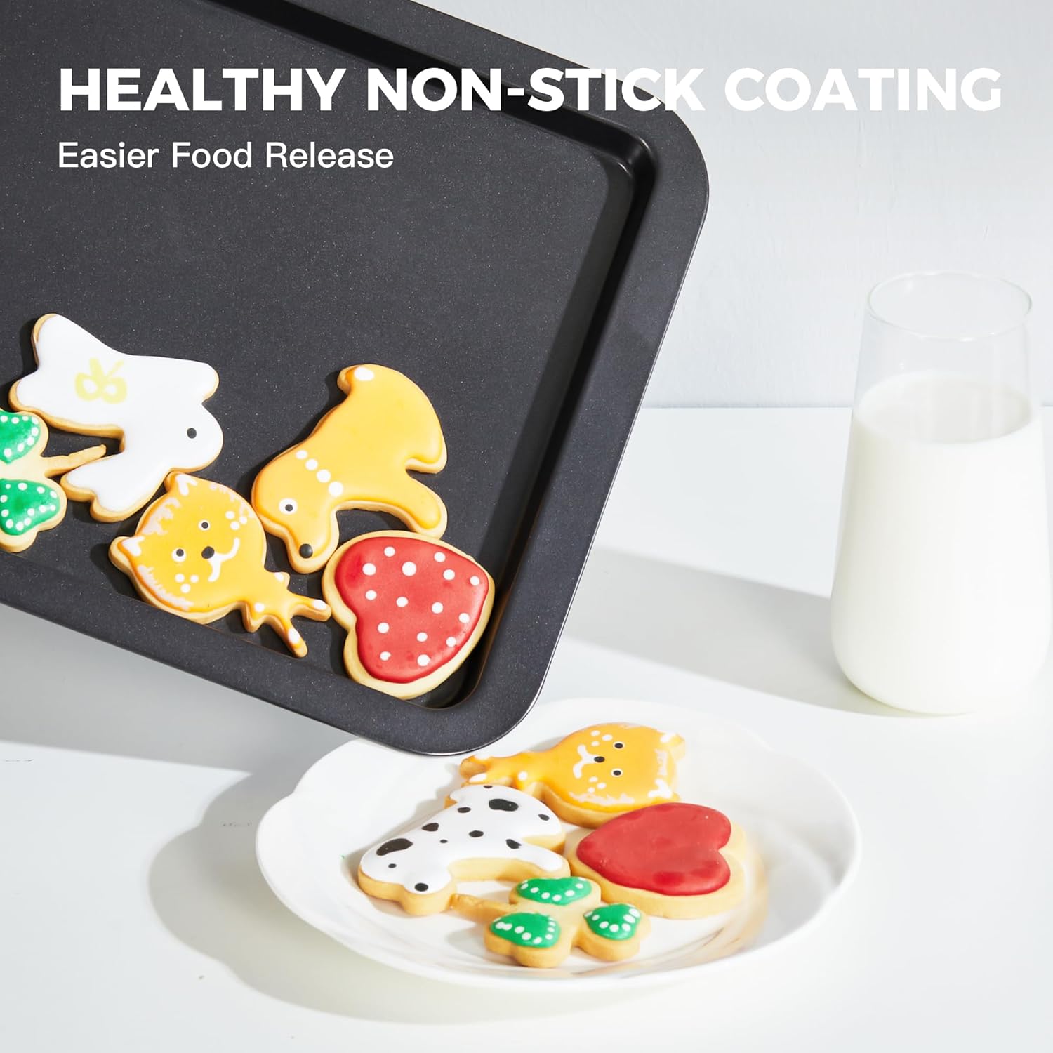 HONGBAKE Baking Sheet with Cookie Cutters, Jelly Roll/Quarter Baking Pan Set for Oven, 8 Pack Nonstick Bakeware Sets with Wider Grips, Premium, Dishwasher Safe - Dark Grey