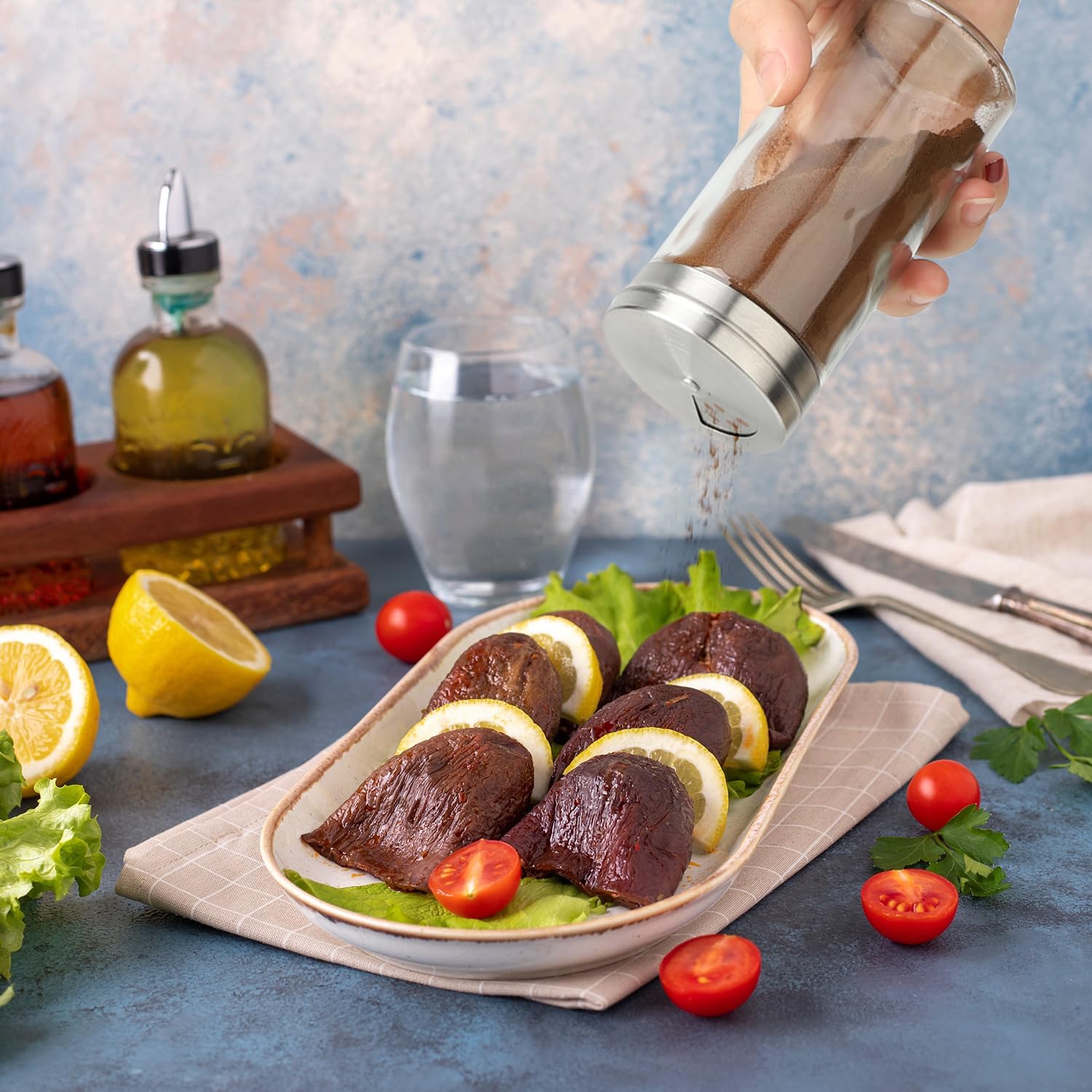- Shaker Lid with 3 Different Pouring Holes: There are three kinds of holes on the top of cap, you can rotate it to adjust the hole size, easily control the condiment quantity. This design allows for convenient and precise dispensing of your spices. Whether you need to shake out fine sugar, salt, or pepper, or pour larger peppercorns and grains, our spice jars can meet your various seasoning needs. They are easy to use, making your cooking experience effortless and efficient.