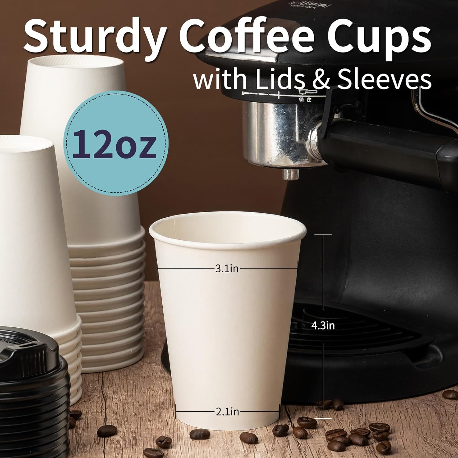 - Paper Cups 12 oz: With 100 lids and 100 kraft sleeves, our 100 count 12 oz paper cups are ideal for on-the-go drink options, great for serving coffee, hot cocoa, hot beverages