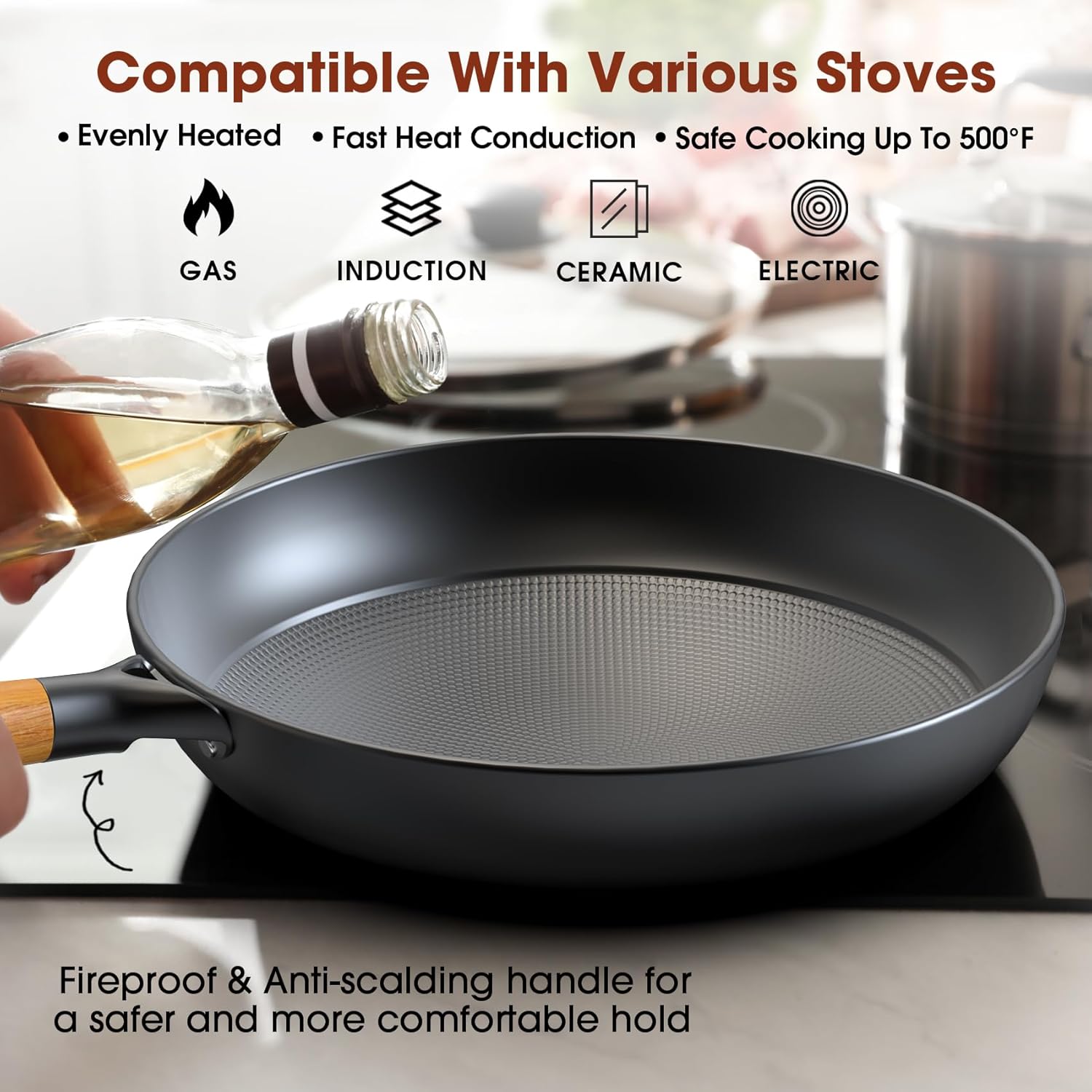 - Advanced Healthy Nonstick Coating Engineered with a reinforced nonstick honeycomb surface, our skillet requires minimal oil for perfectly released food. Free of PFAS, PFOA, —prioritizing your health without compromising performance