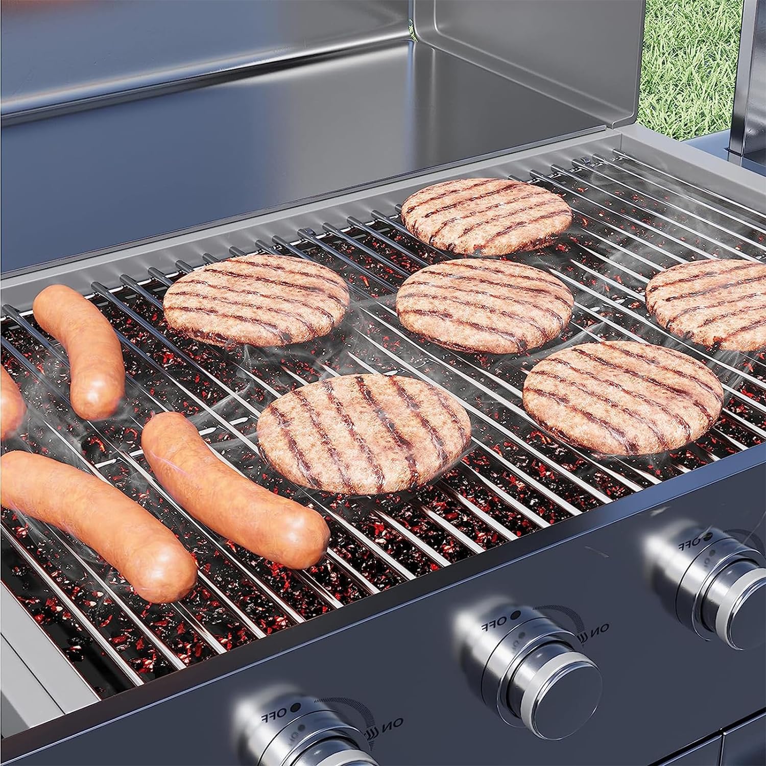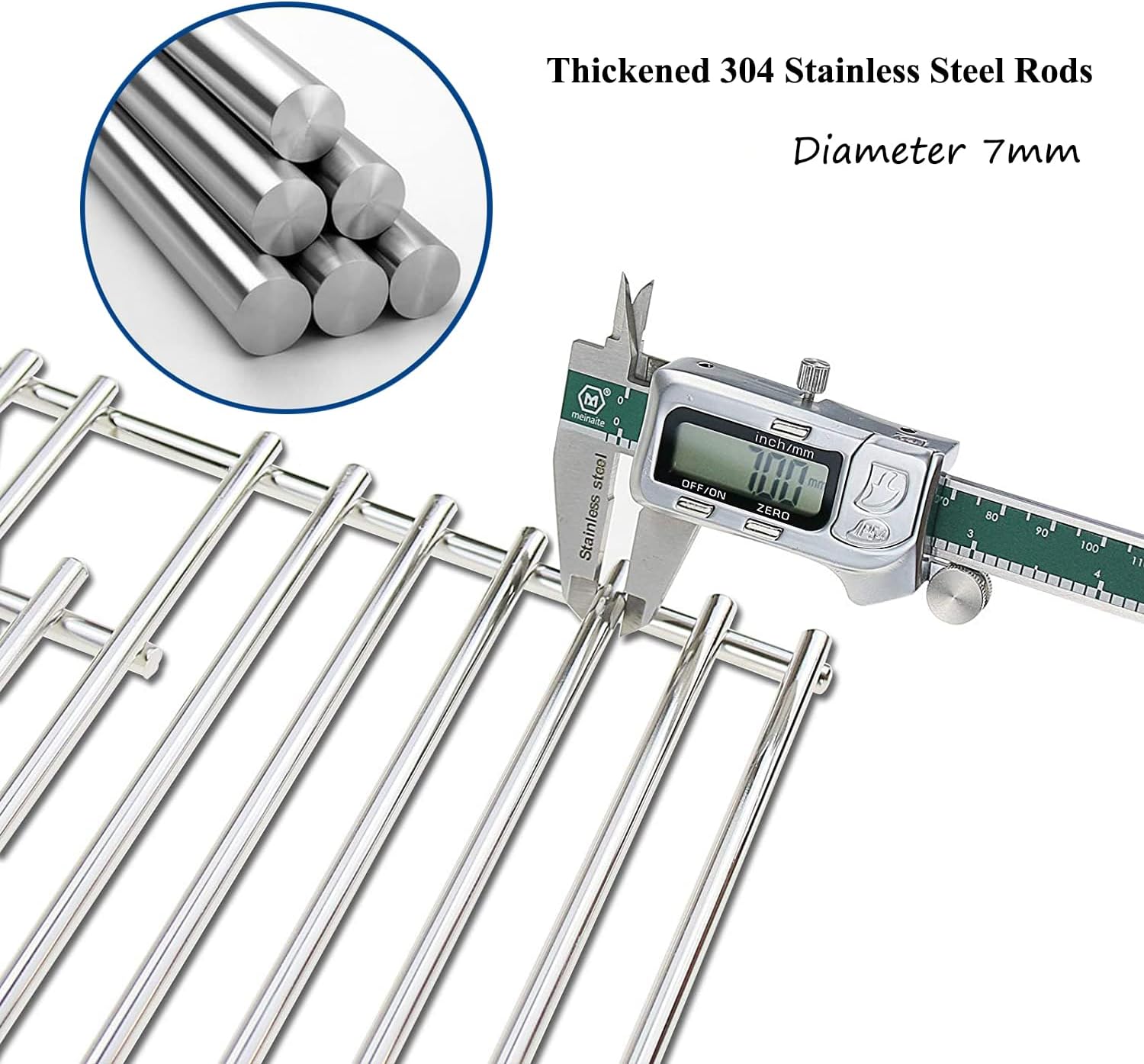 - 【Easy to Clean】Grill grate with smooth surface is free of sharp edges and the end of the rods with a round design that don't hurt your hands. Unlike the cast iron grill that requires more effort to keep clean and tidy, this stainless steel grill grate is non-stick and can be easily cleaned just with a brush.
