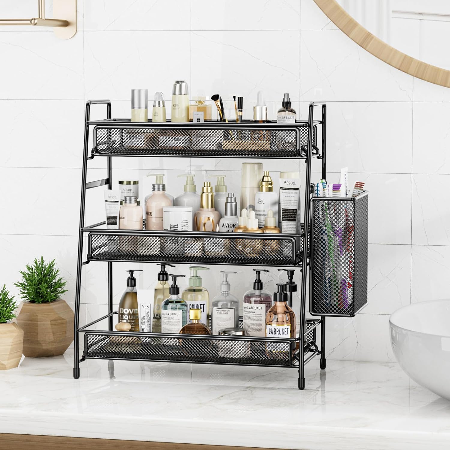 EKNITEY Bathroom Countertop Organizer Shelf - 3 Tier Counter Spice Rack Metal Makeup Rack Small Coffee Station Organizer for Sink/Bedroom/Living room/Kitchen/Office