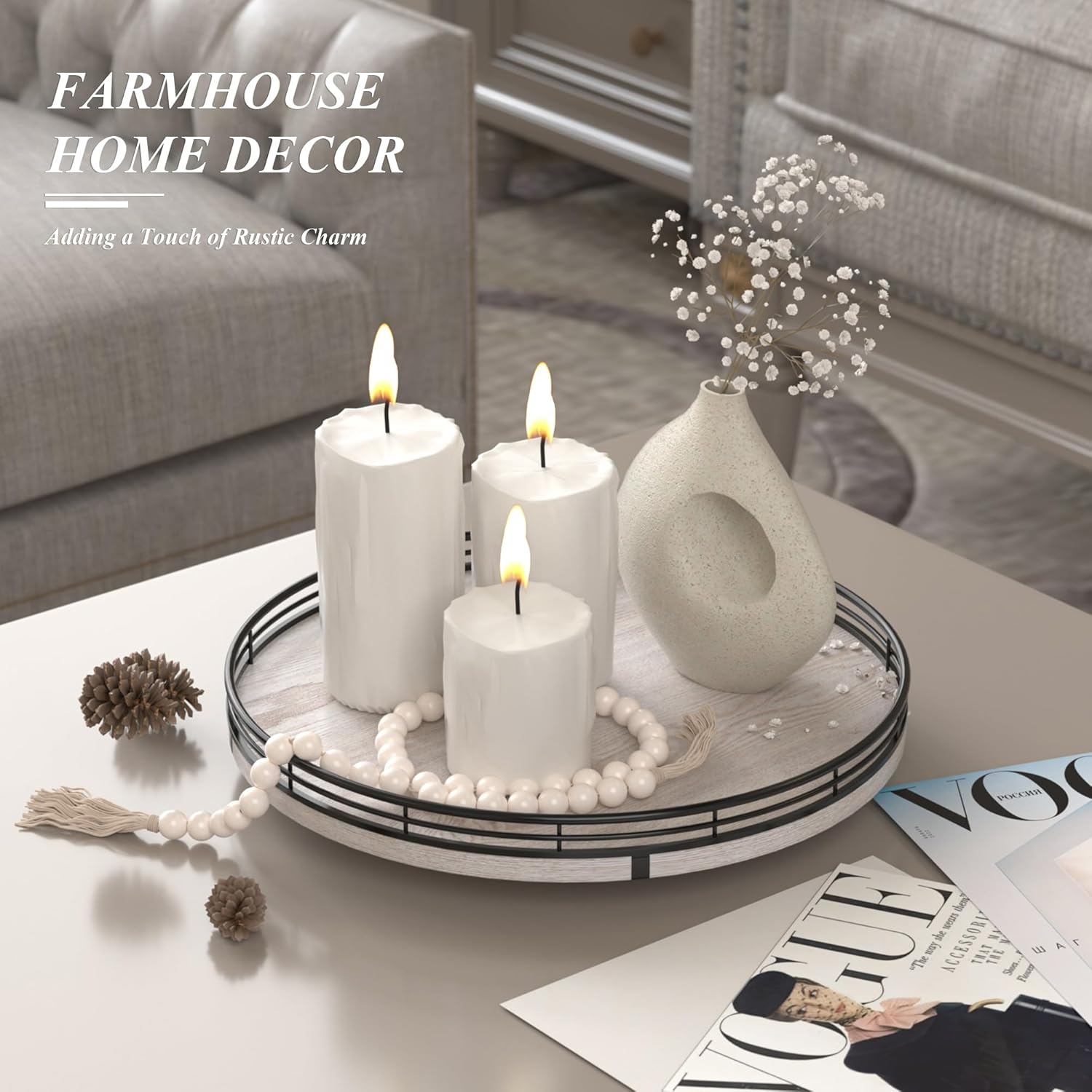 - πππππππ ππππππππ: Our farmhouse lazy Susan made of natural ash wood veneer, sturdy, durable, and beautiful in texture. It is known for its durability, strength, and aesthetic, as well as it can handle heavy use and resist wear and tear. Widely used as coffee table decor, kitchen decor, centerpiece table decortations.