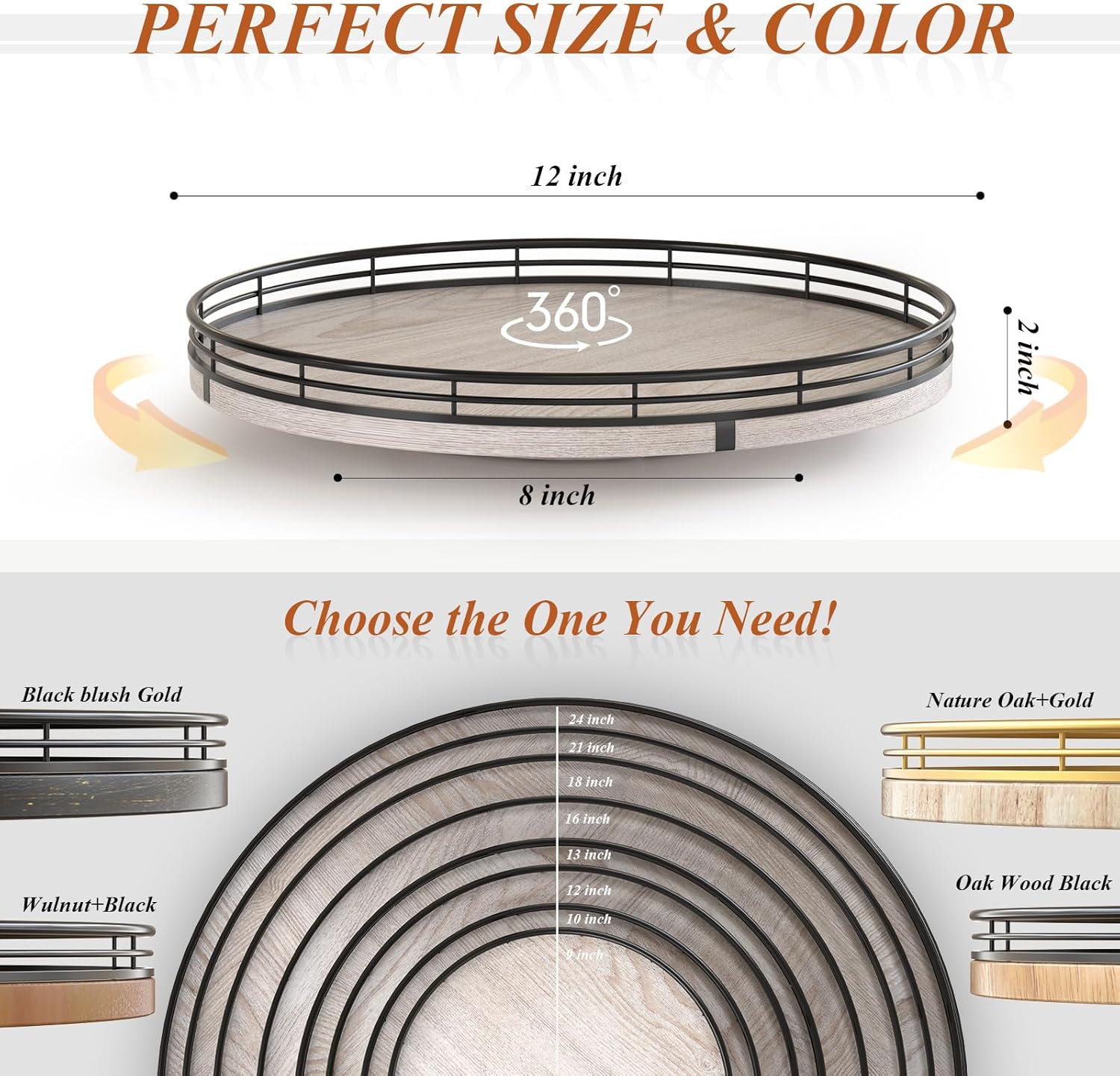- ππππππ ππππππ:The base is large enough to hold a lot and heavy objects and successfully rotate. The surrounding metal rail prevents items from tipping or sliding off while rotating, Built-in ball bearings ensure effortless, stable spinning for easy access from any angle, anti-slip pads on the bottom of the Lazy Susan for extra surface protection.