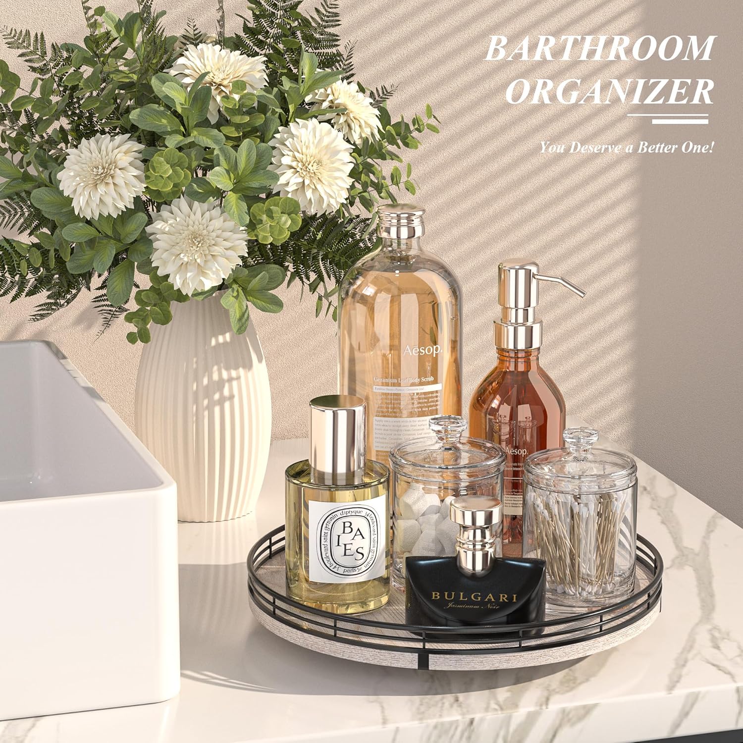 - πππππππππ πππ:This lazy susan is enough to be used nearly anywhere, perfect in the bathroom, bedroom, laundry room, office, etc. Keep your bathroom counter organized with this bathroom tray for toiletries, lotion, washcloth, cotton swabs, soap and scrubber. Using a bathroom vanity tray to keep all your daily skin care and makeup. On the bedroom counter, ideal to organize perfumes. Good idea for the office desk and craft room to organize. Keep your coffee stuff perfect at your coffee Station.