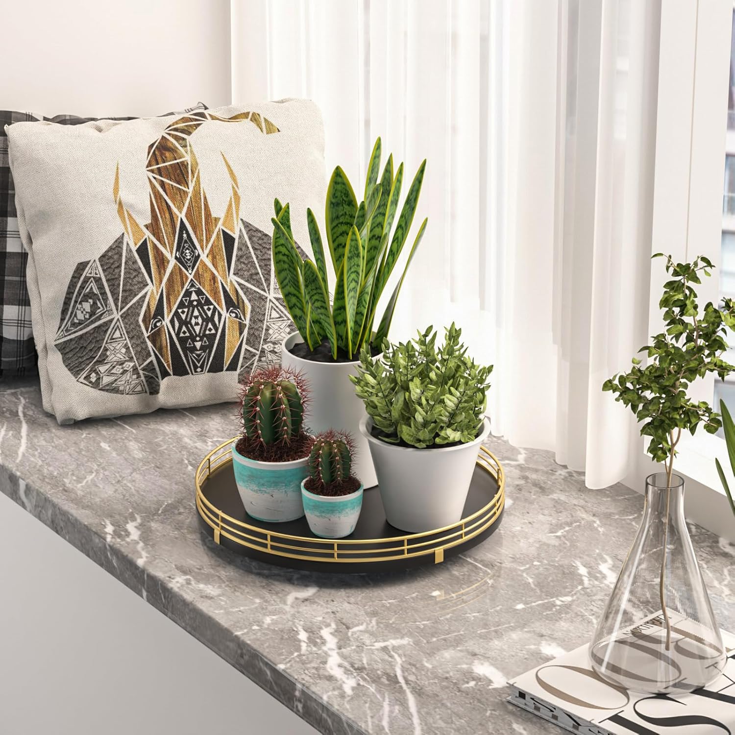 - ๐ ๐๐น๐๐ถ-๐ฃ๐๐ฟ๐ฝ๐ผ๐๐ฒ ๐จ๐๐ฎ๐ด๐ฒ: Perfect for a wide range of occasions and spaces. Whether used as a centerpiece table decorations, a vanity tray in your bathroom, or condiment organizer on your kitchen, this versatile round tray adapts to your needs in any room