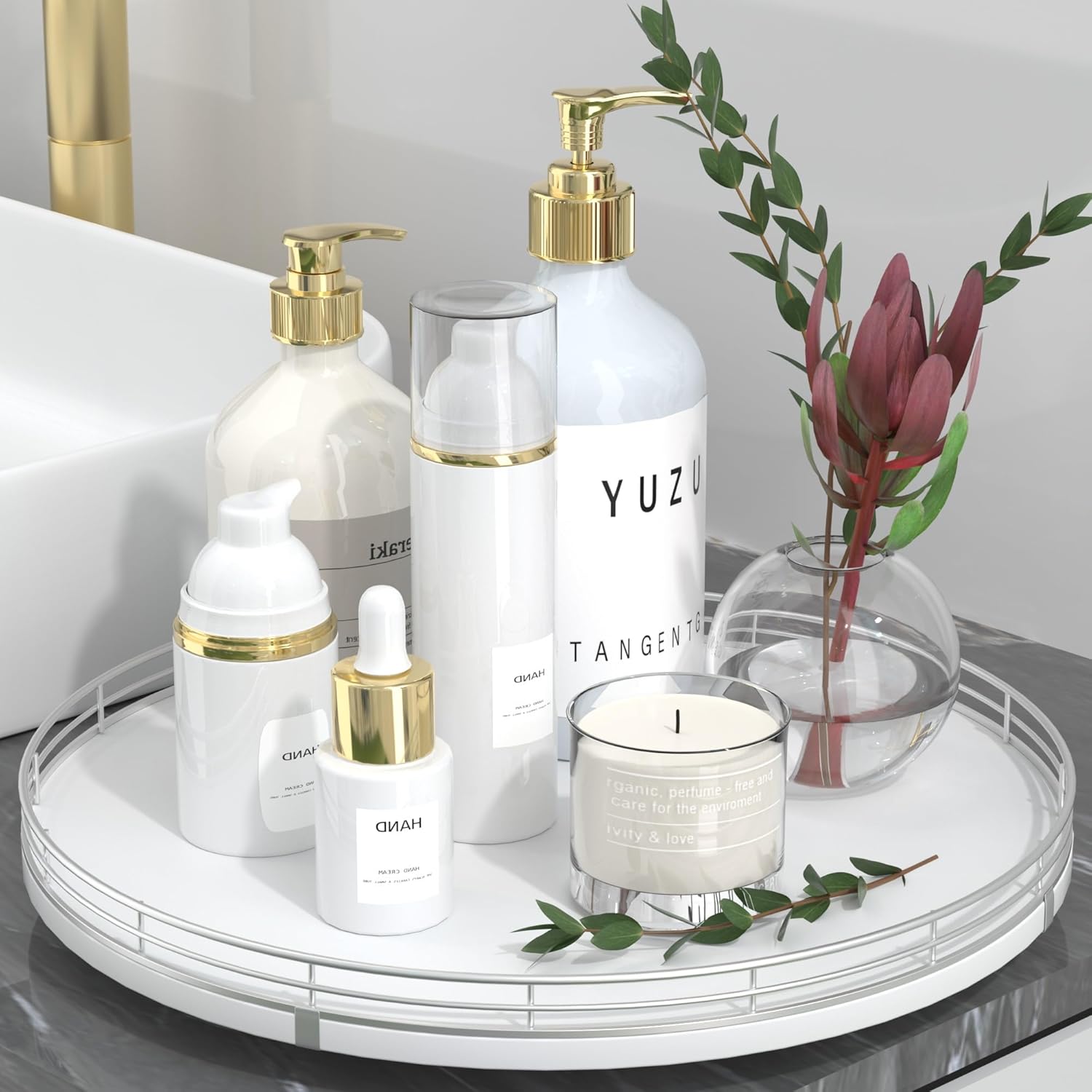 - ๐ ๐๐น๐๐ถ-๐ฃ๐๐ฟ๐ฝ๐ผ๐๐ฒ ๐จ๐๐ฎ๐ด๐ฒ: Perfect for a wide range of occasions and spaces. Whether used as a centerpiece table decorations, a vanity tray in your bathroom, or condiment organizer on your kitchen, this versatile round tray adapts to your needs in any room