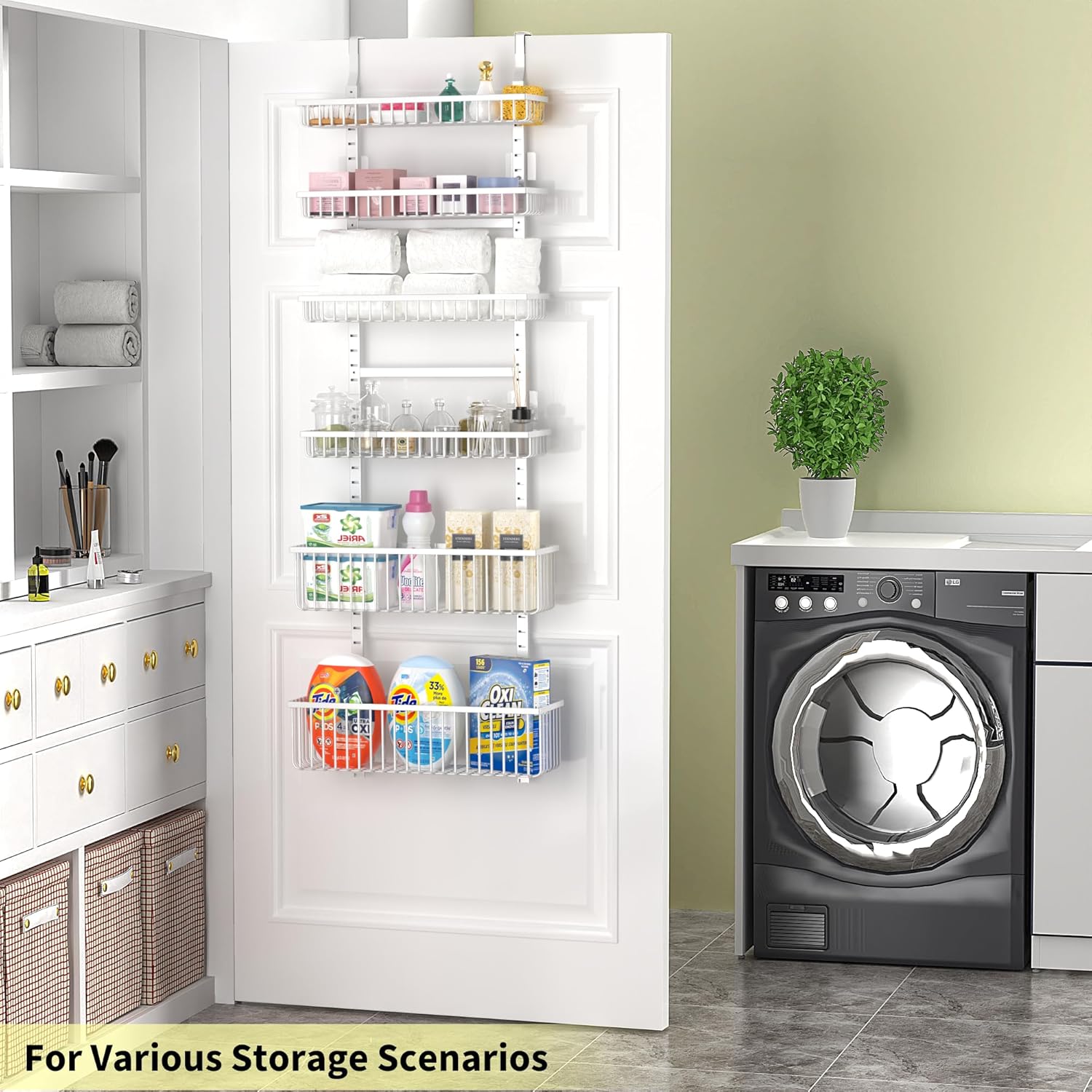 - Quick & Easy Installation: No tools or drilling are required to install our pantry organizer over any standard door. This makes it a hassle-free storage solution that won't damage your walls or doors.