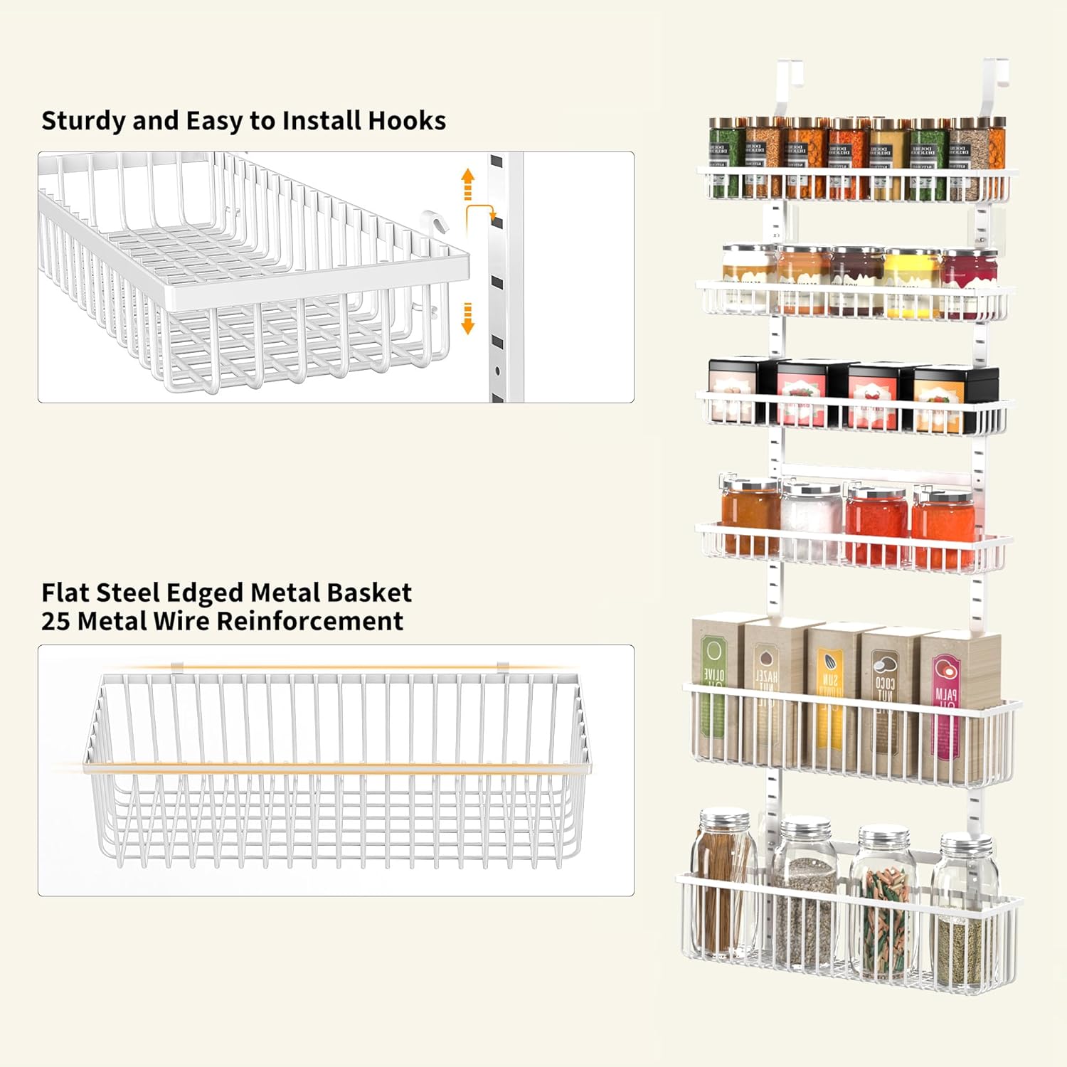- Maximize Your Space: Our 6-Tier over the door pantry organizer is designed to make the most of your storage space, allowing you to store more items in a smaller area such as spice and some jars. Perfect for small kitchens or those with limited storage space.