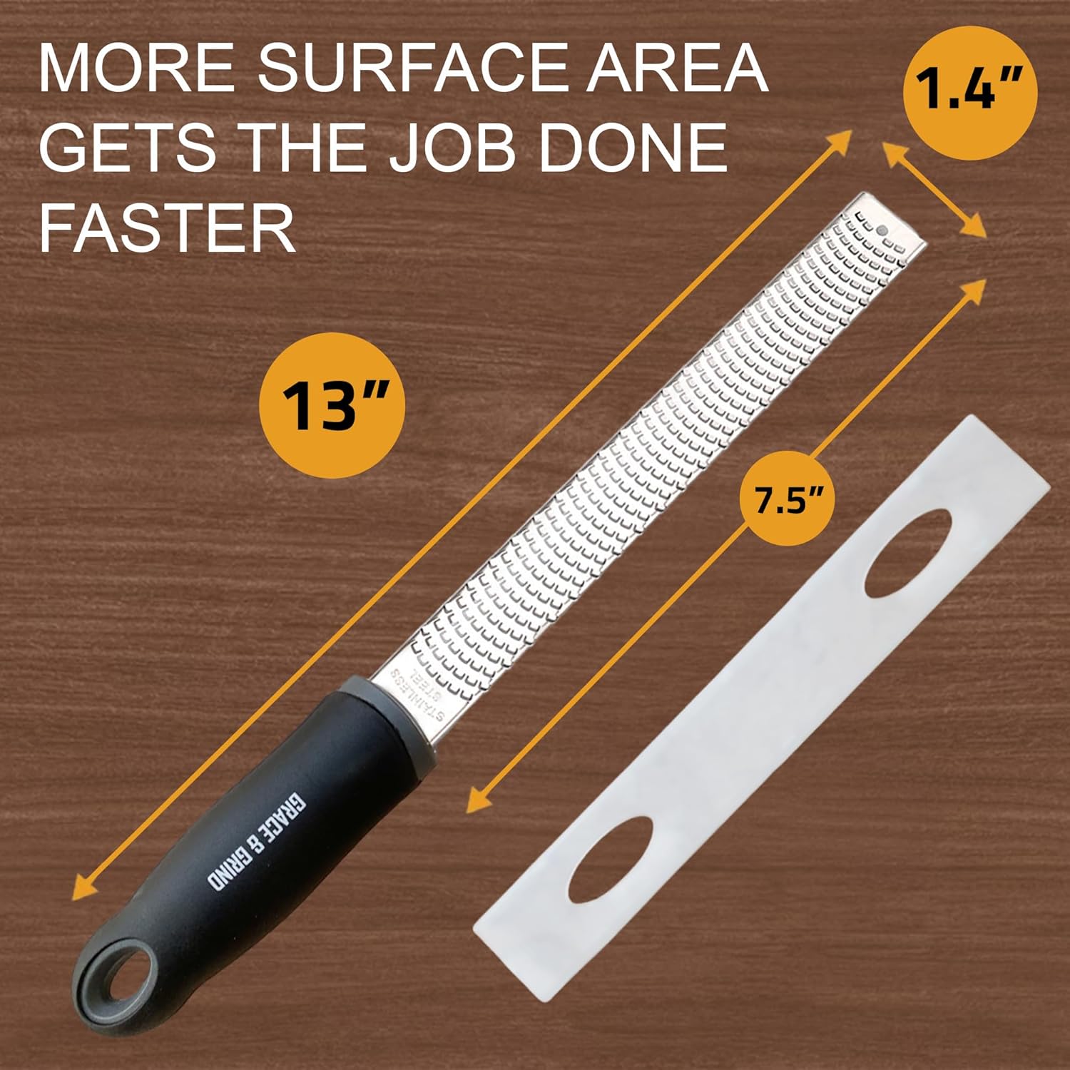 - IT IS BIG 💪 – This baby is 13 inches tall - more surface area means much faster zesting & grating. It's as tall as a bowling pin yet it fits in our drawer (but we like to hang ours up like a trophy).