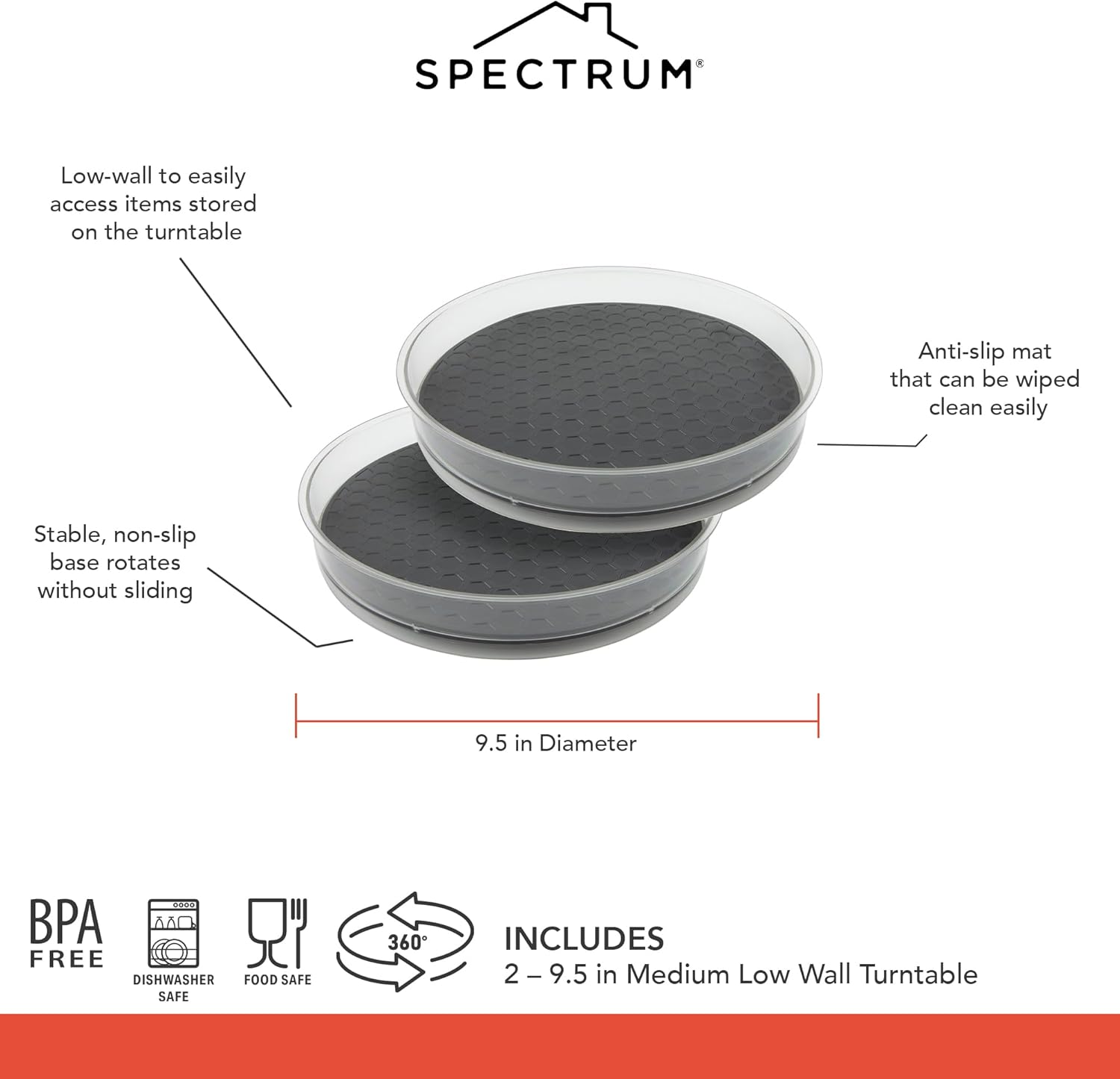 Spectrum Lazy Susan Organizer, Hexa Round Medium (2-Pack) - Lazy Susan Turntable for Cabinet, Refrigerator, Pantry, Table, & Shelf - Rotating & Spinning Pantry Organization & Storage for Fridge
