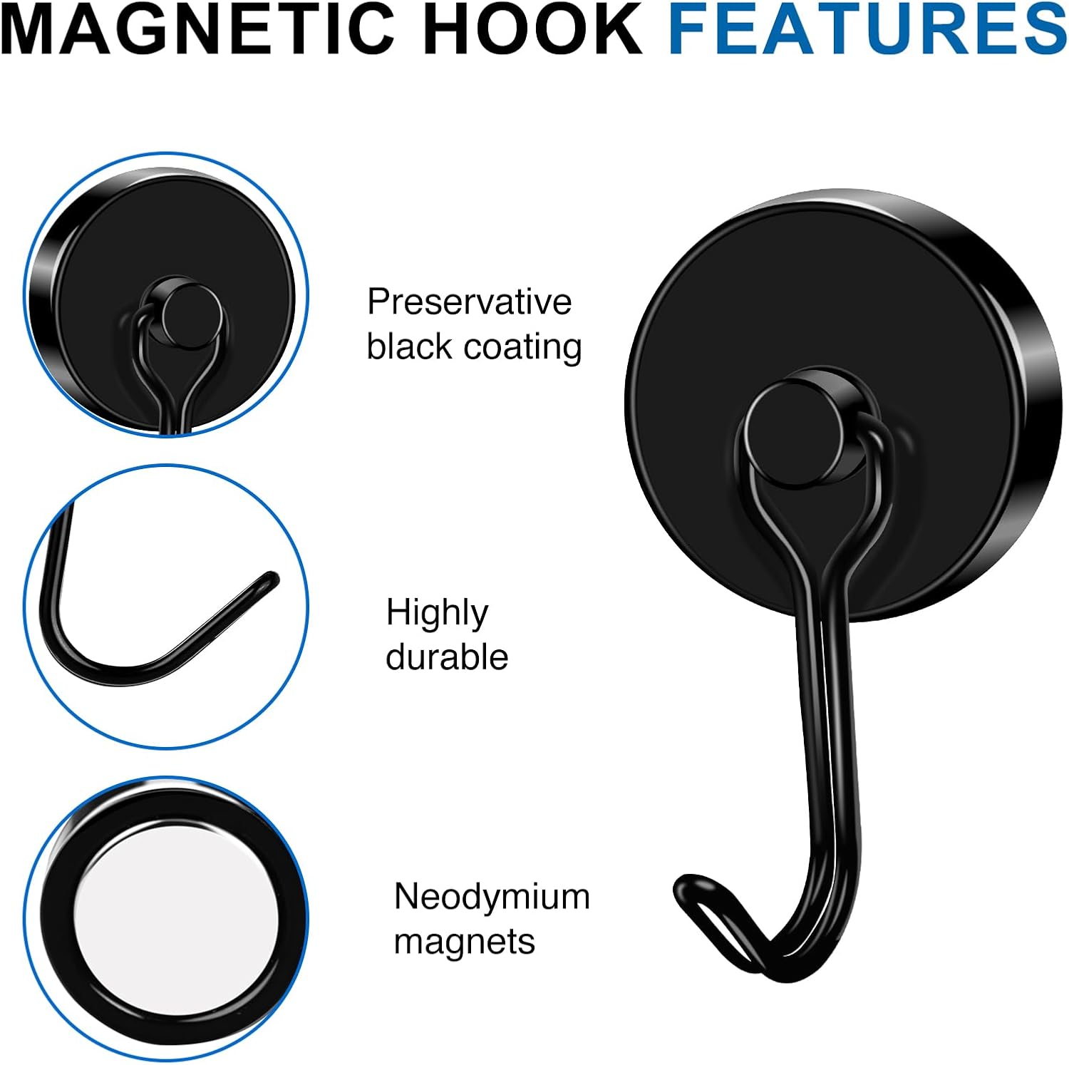 - 【 High-quality Magnetic Coating 】 The magnet hooks adopts a three-layer epoxy resin + nickel + copper coating, providing a lustrous and anti-rust coated steel cup for the magnetic hook, offering protection for the magnetic hook and helping to prevent cracking or breaking.