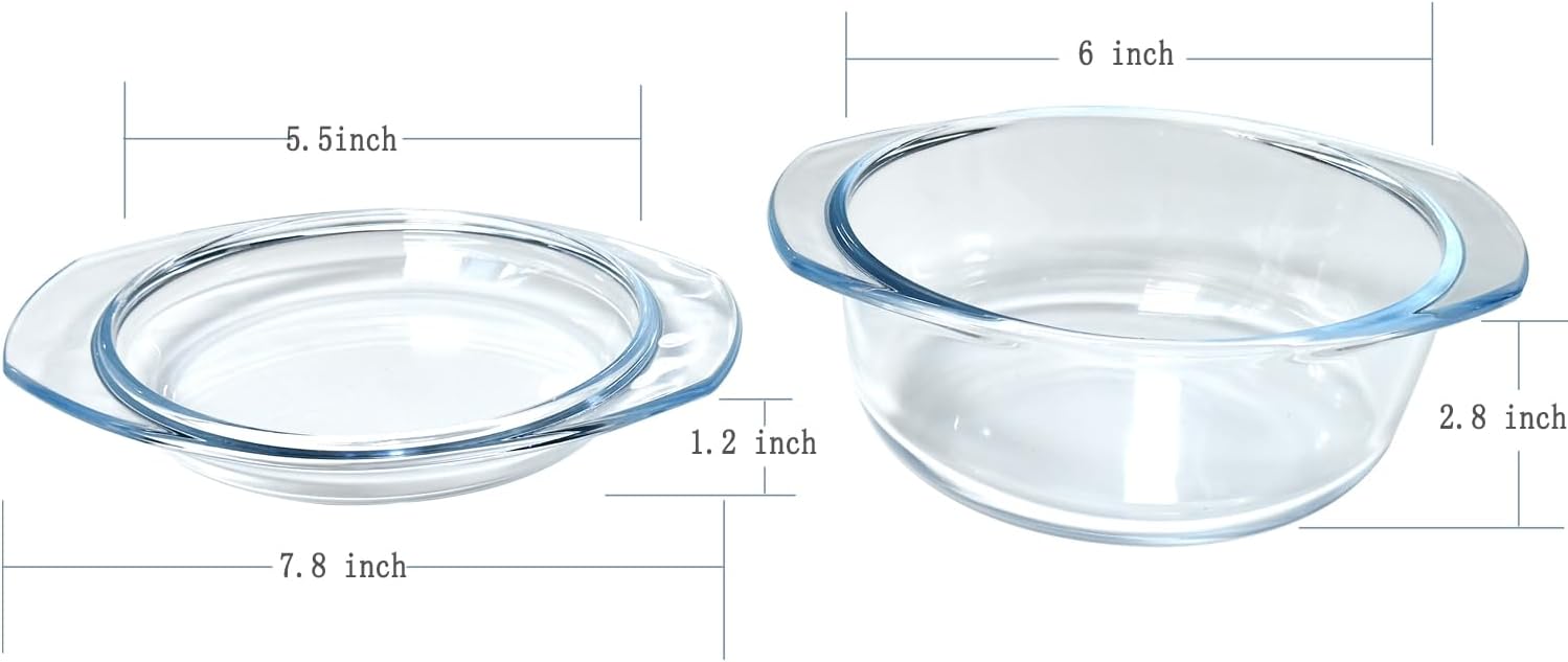 Small 1-QT Round Tempered Glass Casserole Dish with Lid, Mini Clear Glass Casserole Bowl with Glass Lid