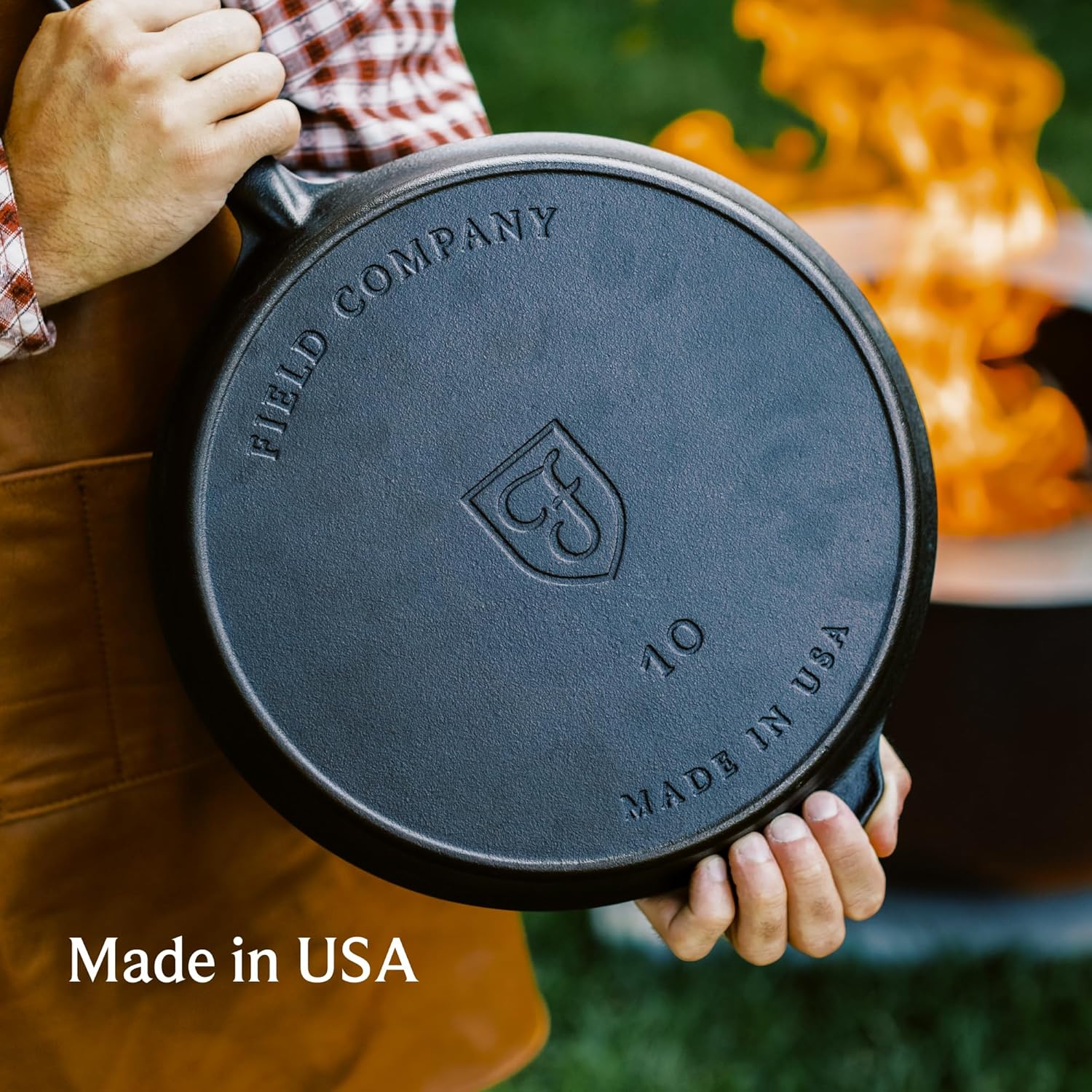 Field Company 11-Inch Cast Iron Skillet – No.10, Lightweight & Smooth, Nonstick, Preseasoned with Organic Oil – Made in USA, Non-Toxic – Great for Roast Chicken, Family Dinners, Vintage Design