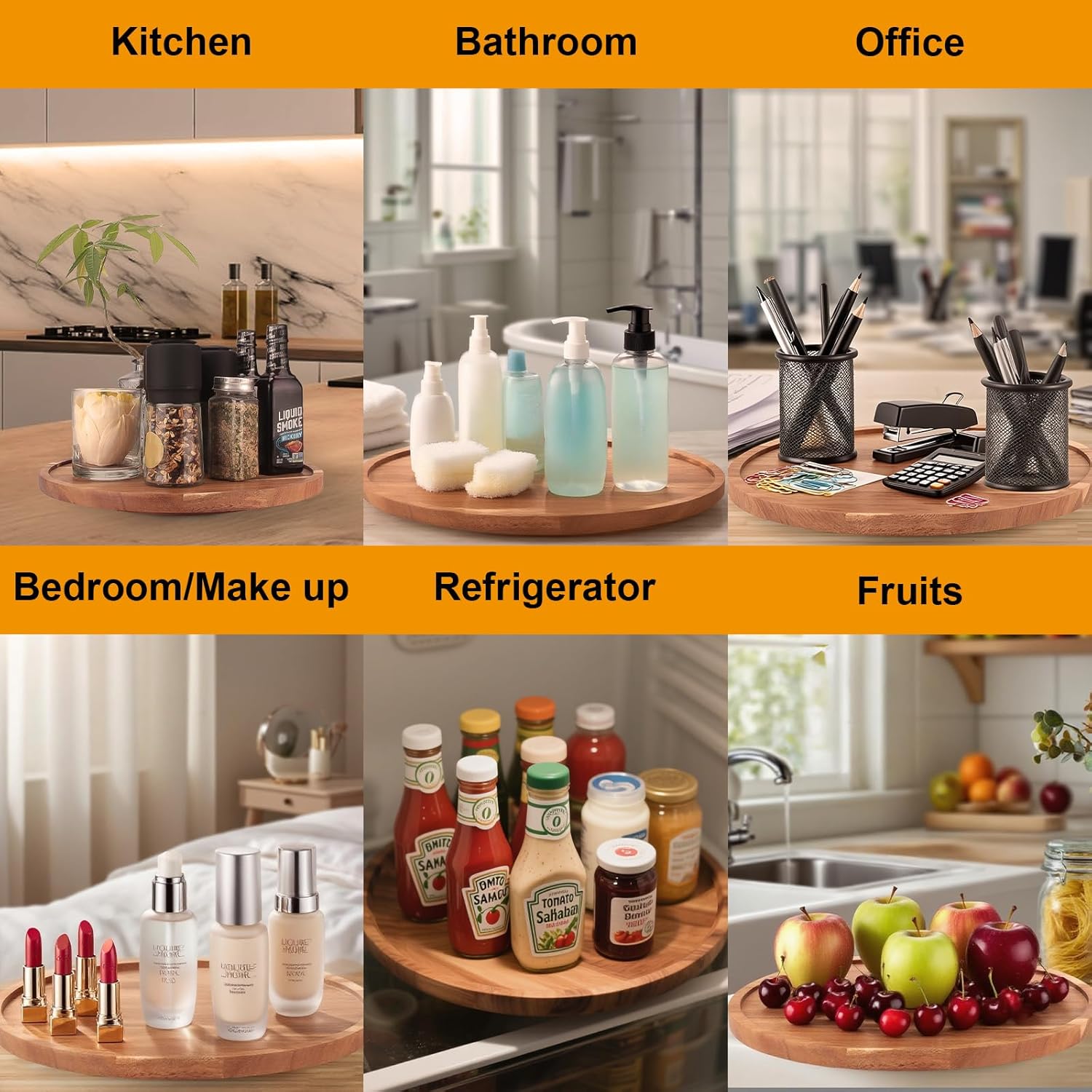 - Wide Range Of Use: Pantry lazy susan organizer not only can be placed in the kitchen for seasoning and place on countertop for snacks, but also can be used in the bathroom or bedroom for makeup and toiletries
