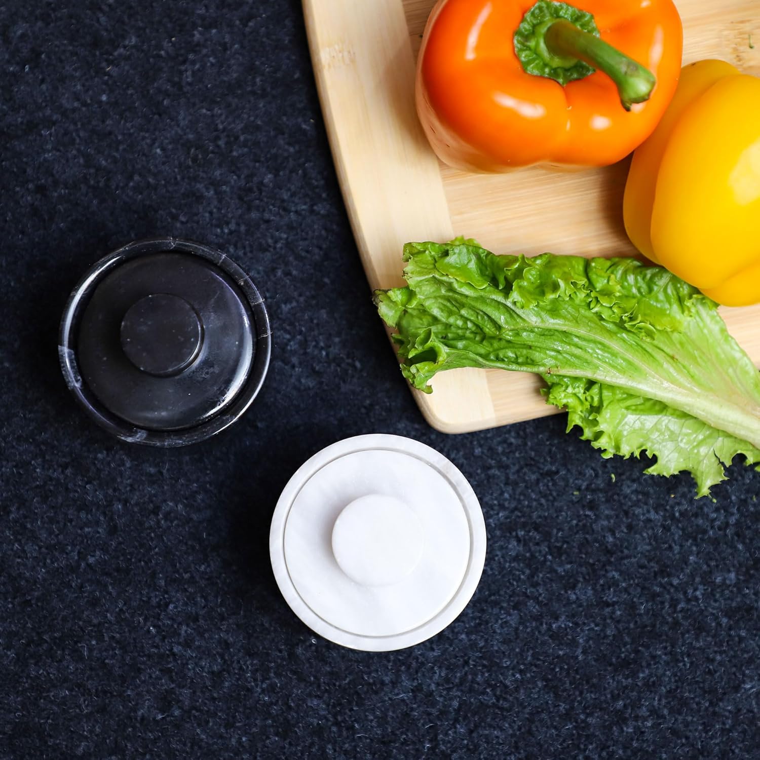 Marble Salt Cellar With Lid- Pack Of 2 Marble Salt And Pepper Bowls- Salt Holder With Lid To Put Salt, Paprika, Pepper, And Spice (White & Black, Style 01)