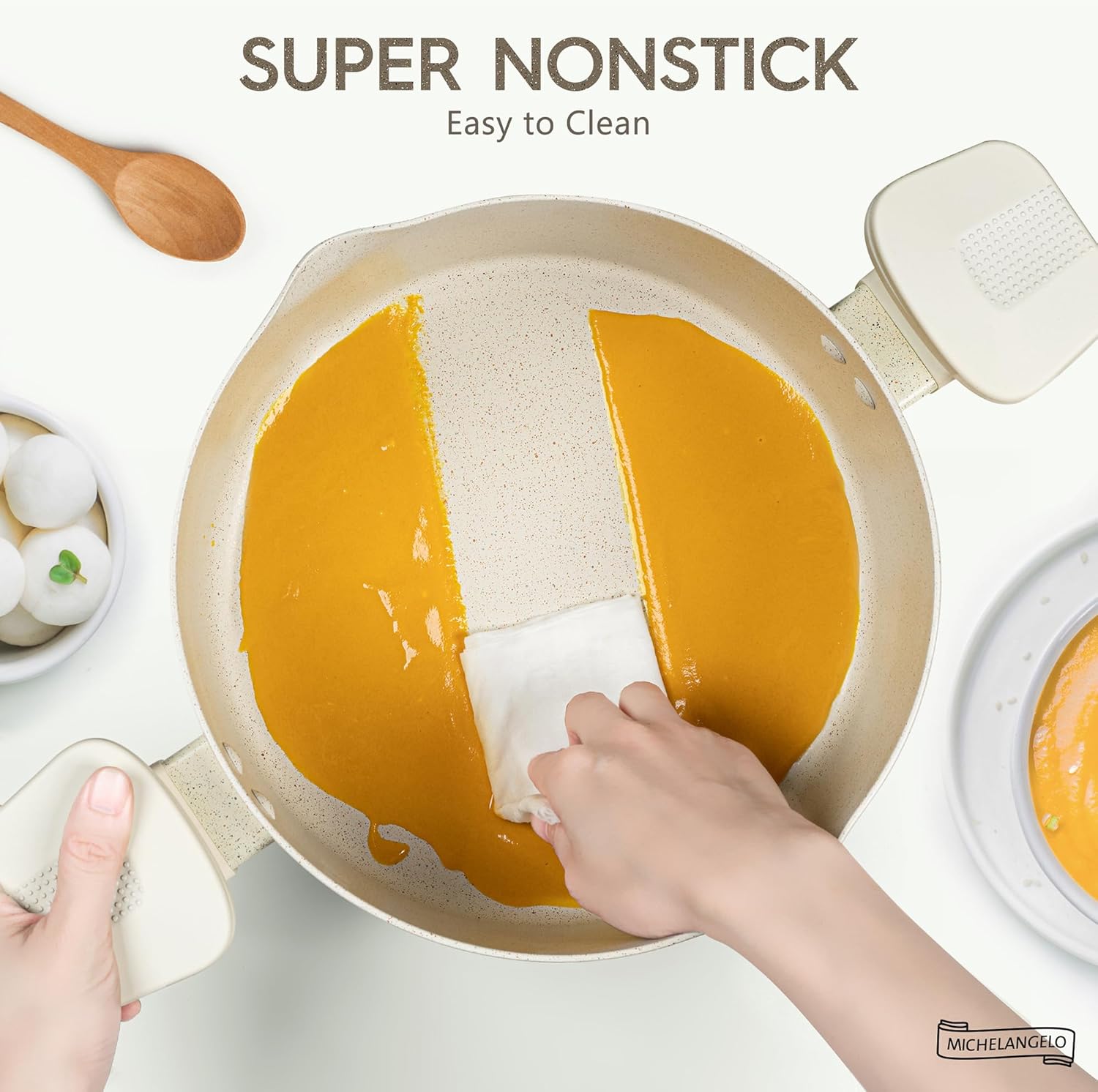 - COMFORTABLE HANDLES - Our nonstick pot comes with ergonomically designed handles that are wrapped in soft silicone that stays cool to the touch and easy to hold.