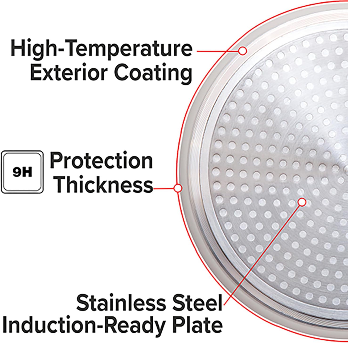 - DURALON BLUE HARDNESS – Hardness is rated at 9H. Since diamond is rated at 10H, It is extremely strong. It has HIGH resistances to abrasion, corrosion, and acid meaning it won’t chip or discolor and will retain its non-stick properties longer.