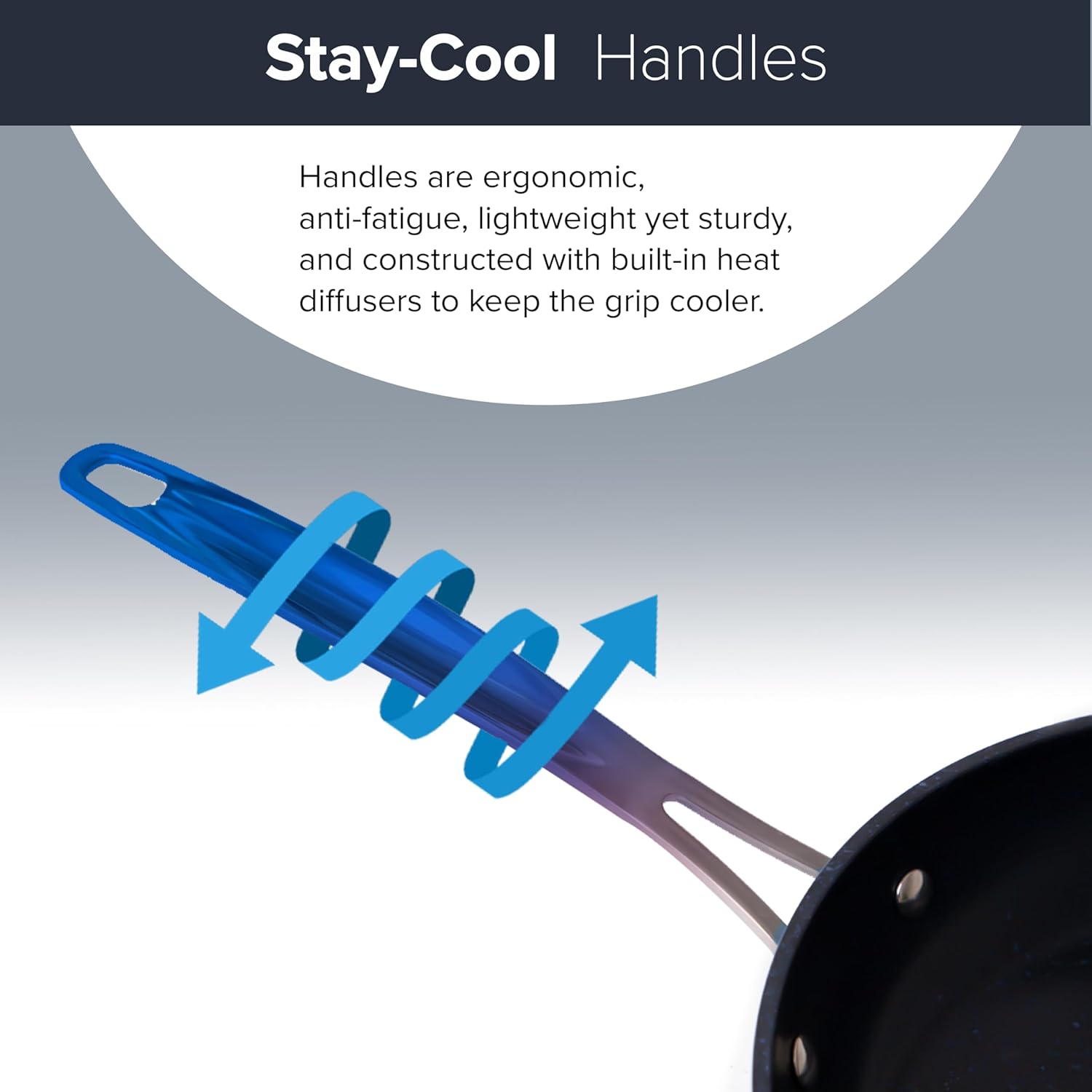 Nuwave 3-Piece Fry Pan Set, 8”, 10”, 12” Forged Lightweight, G10 Healthy Duralon Blue Ceramic Ultra Non-Stick, Induction-Ready & Works on All Cooktops, Ergonomic Stay-Cool Handles