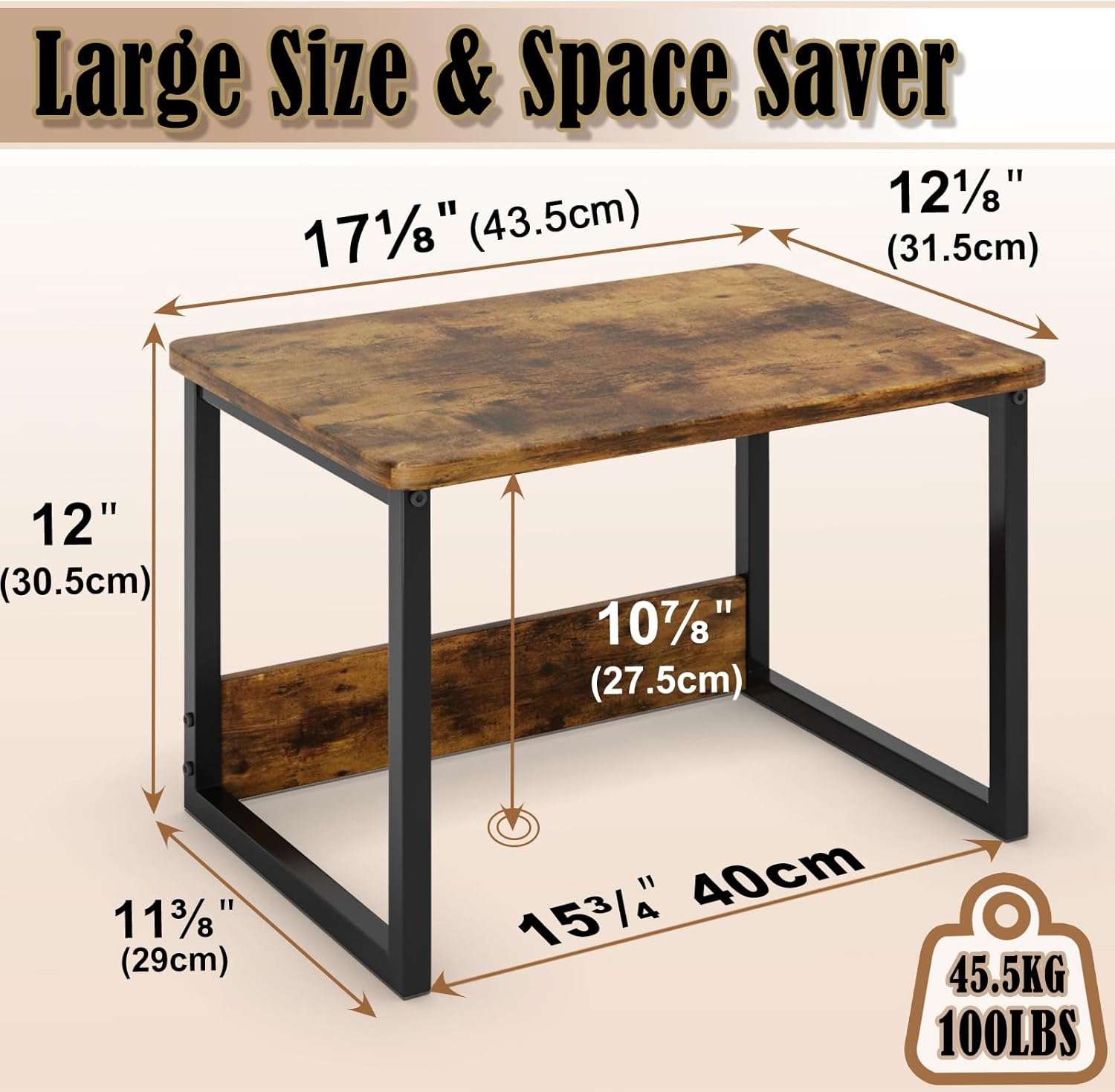 MARTY Kitchen Countertop Organizer Cabinet Shelf, 17x12.4 Large Spice Racks Counter Shelf Microwave Oven Rack Desktop Storage Organization for Kitchen, Office, Metal & Wood, Rustic Brown