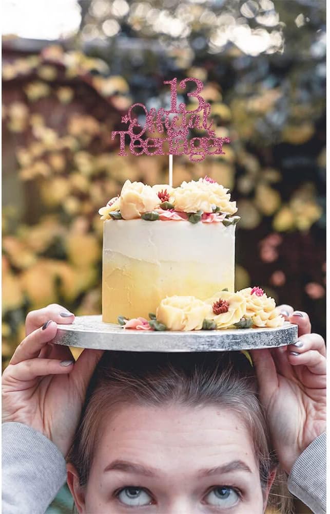 Glittery 13 Ofiicial Teenager Cake Topper with Star,13th Happy Birthday Cake Topper Party Decorations Party Supplies for Boys Girls Rose Gold