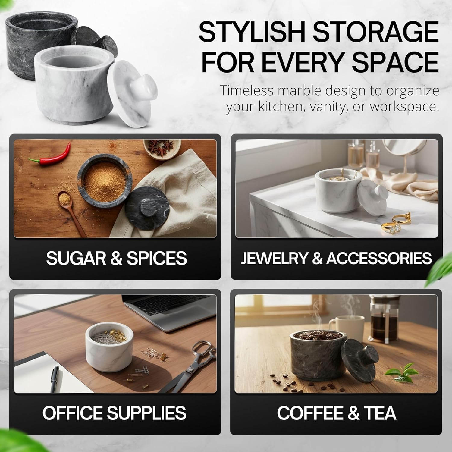 - Multi-Purpose Holder - Perfect for storing salt, spice, herb, seasoning, sugar, tea, coffee beans, bath salts, paper clips, rubber bands, pins, and more, making it a versatile addition to any space