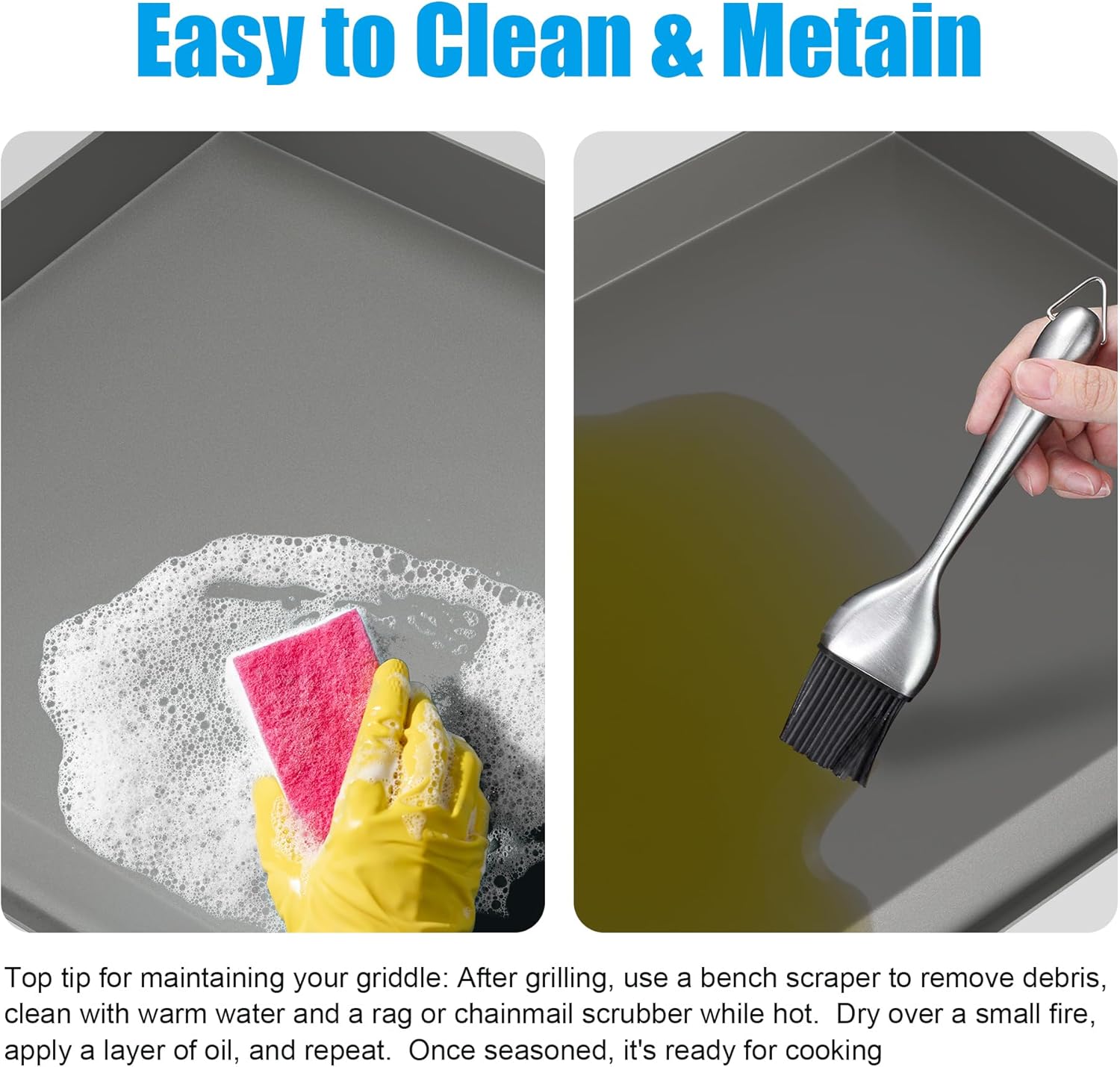 - 【Portability】Includes 1 pack cooking griddle+1 pcs Griddle Carry Bag+1 grease tray with clip.The drip pan can save you a lot of cleaning work. Insert the grease tray into the clip, install it in a few seconds and simply attach it to your grills.It is easy to clean and dishwasher safe