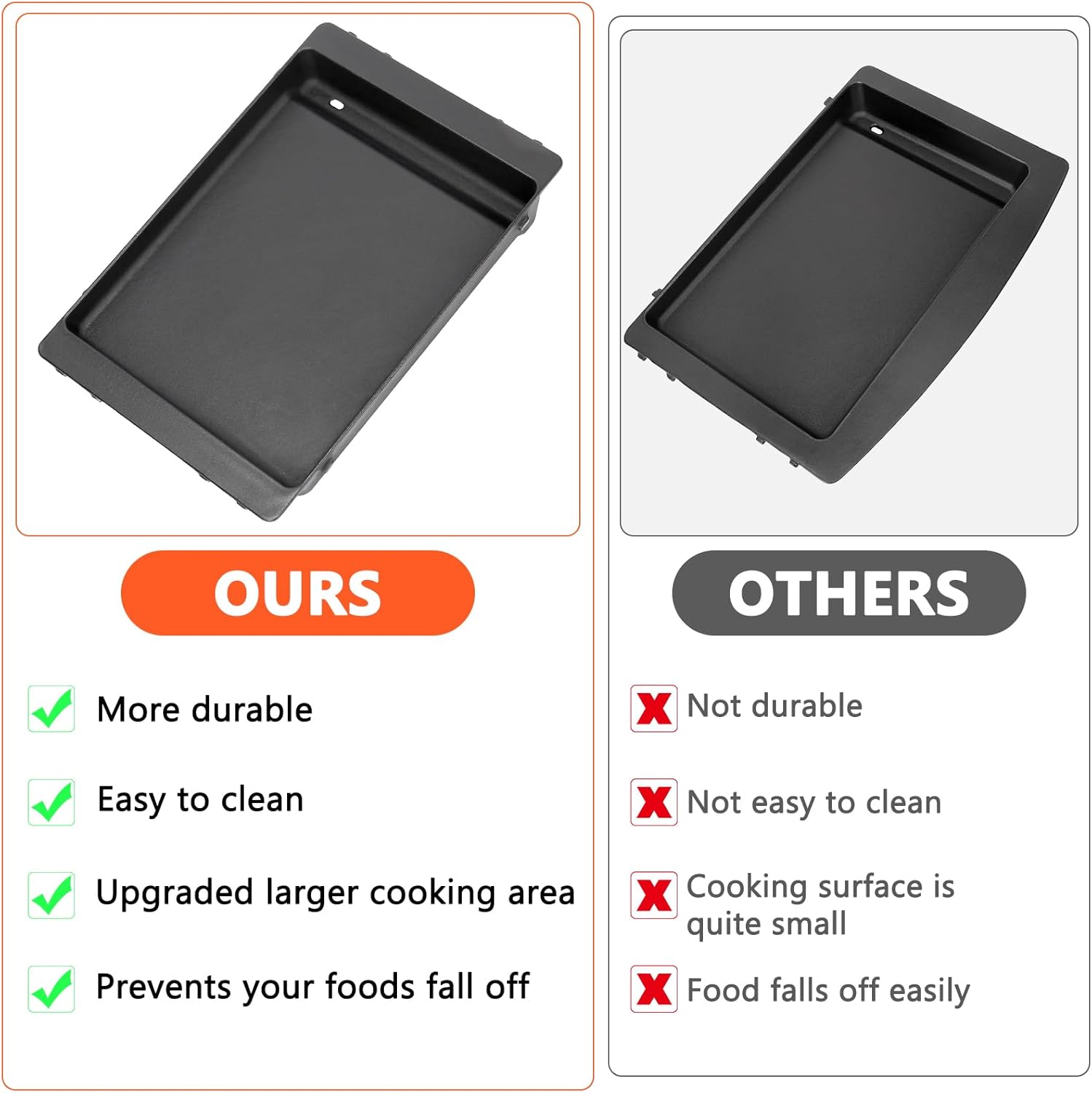 - 【Durable Heavy-Duty Cast Iron】This Weber Spirit Griddle is crafted from heavy-duty cast iron, offering superior durability and even heat distribution for consistently excellent cooking results. Unlike porcelain-coated griddles, which can chip or crack over time, this cast iron griddle is built to last. The sunken cooking surface is designed to prevent small pieces of food from falling through, making it perfect for grilling a variety of meals