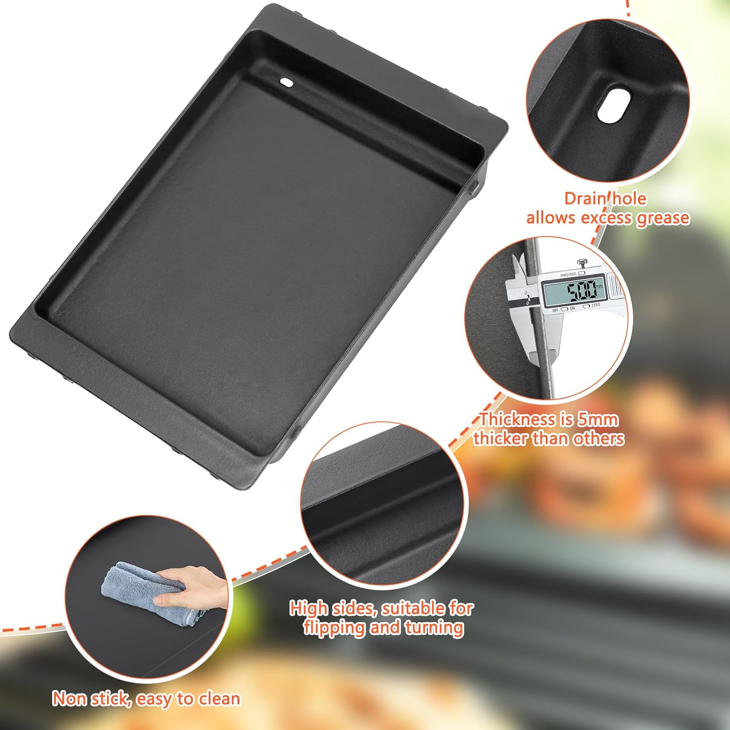 - 【Naturally Non-Stick with Proper Care】Maintain the non-stick surface by regularly seasoning the griddle (lightly oiling after each use). With proper care, this cast iron griddle ensures effortless cooking and easy food release, making your grilling experience smooth and enjoyable. Perfect for your 7658 Griddle or Weber Spirit 2 E310 Griddle