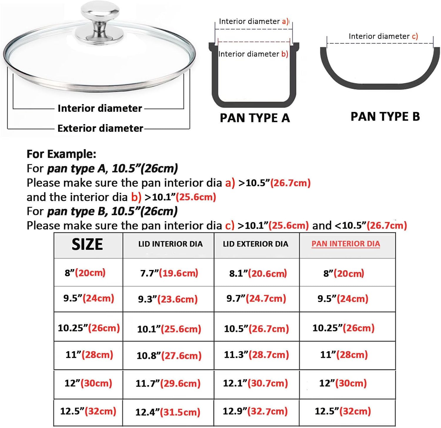 - Style : Glass Lid for Frying Pan, Saute Pan, Tempered Glass Cover with Heat Resistant Stainless Steel Rim