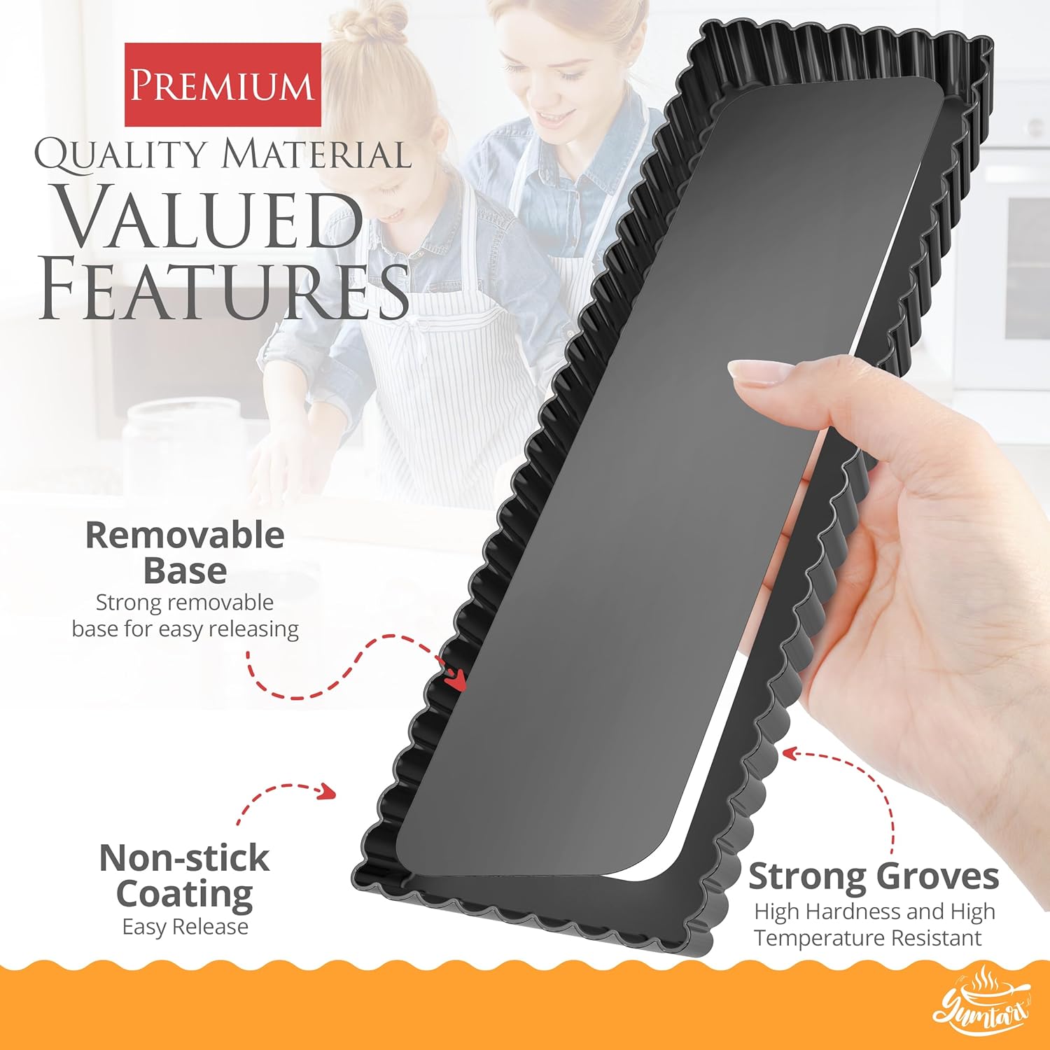 14 Inch Rectangular Tart Pan with Removable Bottom - Non-Stick, Deep Fluted for Tarts, Quiches, and Pies