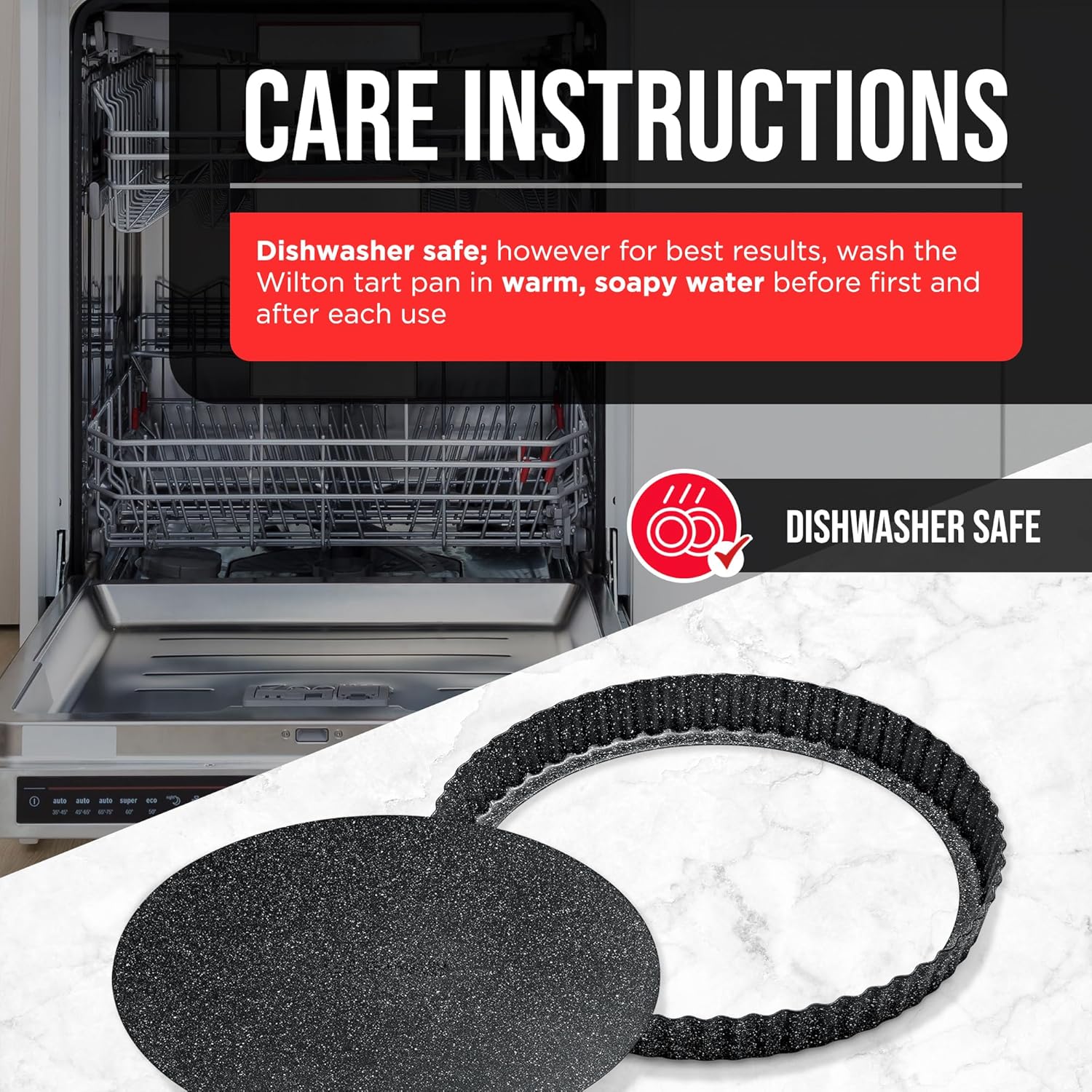 - EASY MAINTENANCE - while our fluted pan tart bakeware is dishwasher safe, for best results, we recommend simply washing it in warm, soapy water so it is good to go for your next bake