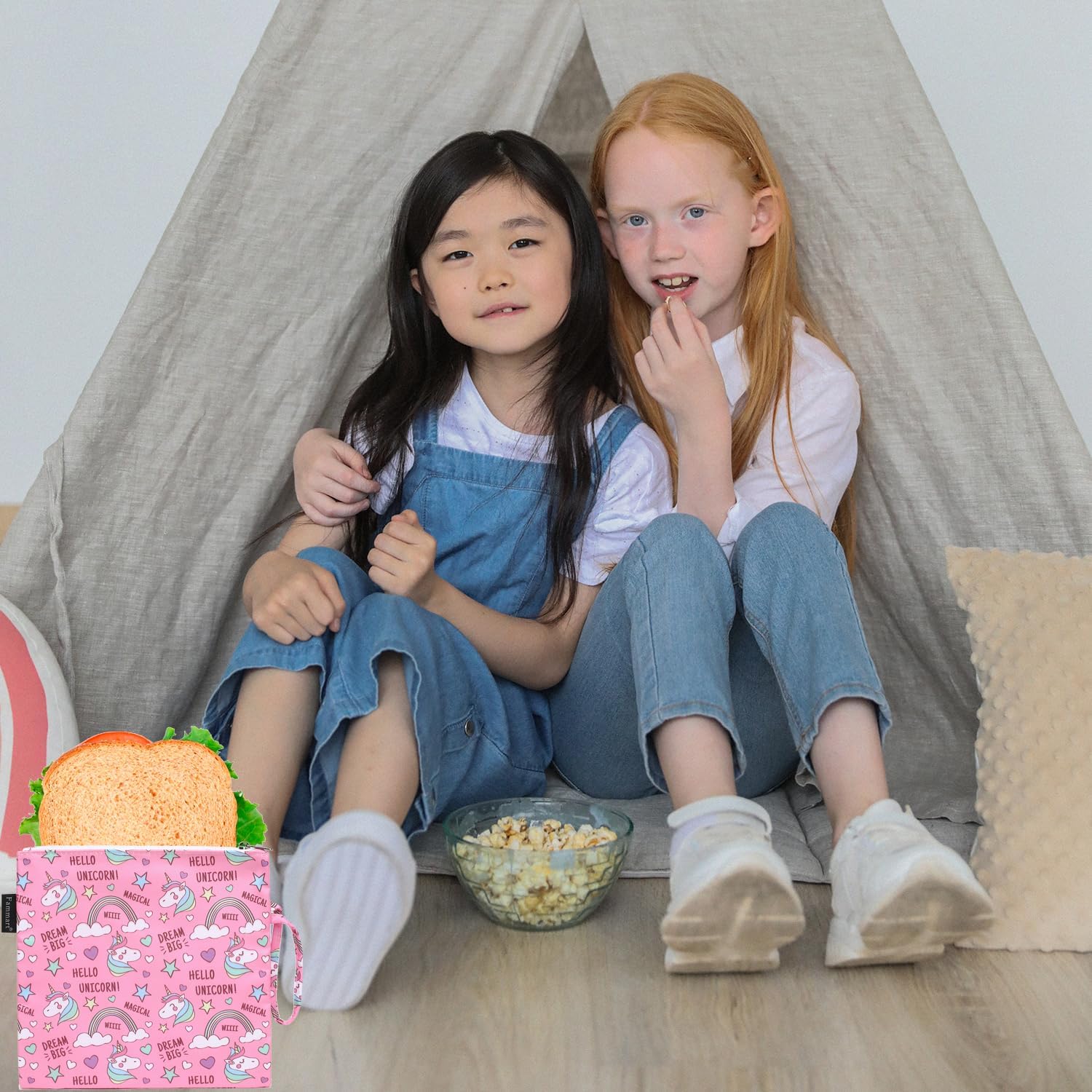 Reusable Sandwich Bag/Snack Bag for Kids & Adults, Dual Layer Lunch Bag with Handle, Washable, Food Safe, BPA Free (1-Pack, Rainbow Unicorn)