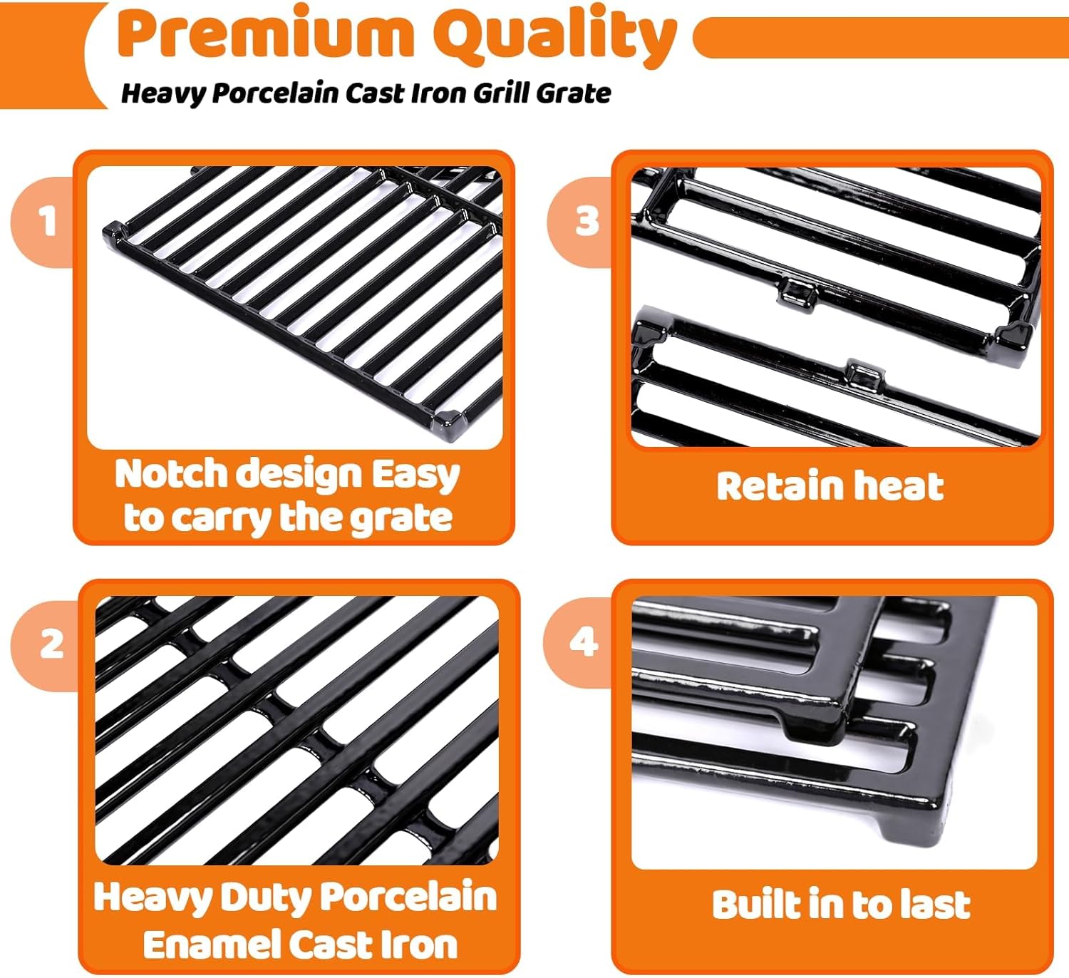 - Replace for weber spirit e310 grates【Retain heat】- Cast iron grates not only heat evenly and retain heat superbly, but also deliver professional searing, able to give prominent sear marks to meat/ veggie