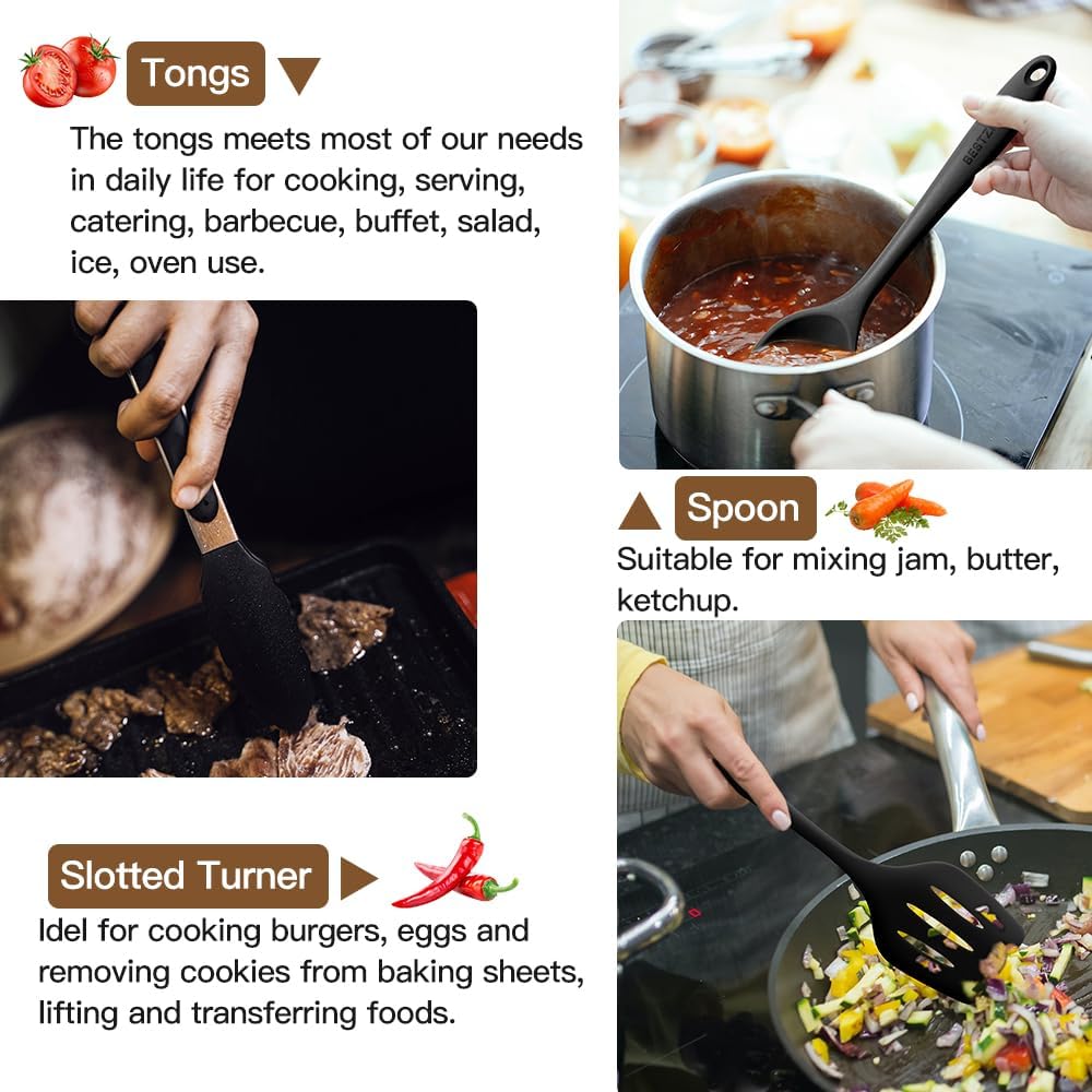 Kitchen Utensil Set - 11 Cooking Utensils - Colorful Silicone Kitchen Utensils - Nonstick Cookware with Spatula Set - Colored Best Kitchen Tools Kitchen Gadgets (Black)