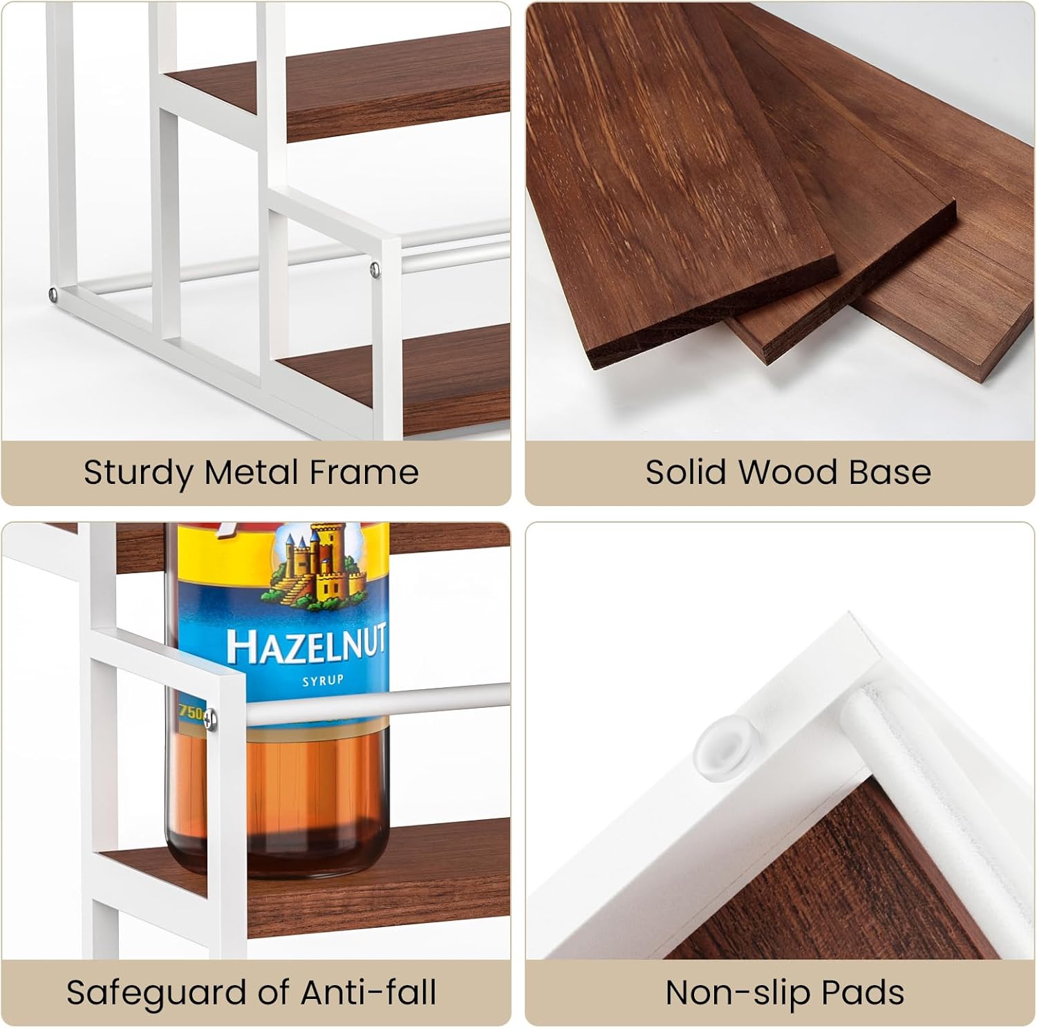 - 【Sturdy & Stable】The metal construction of the syrup holder is strong enough, and the height between each tier is carefully designed to ensure that you can use the syrup pump while the bottle is on the rack.