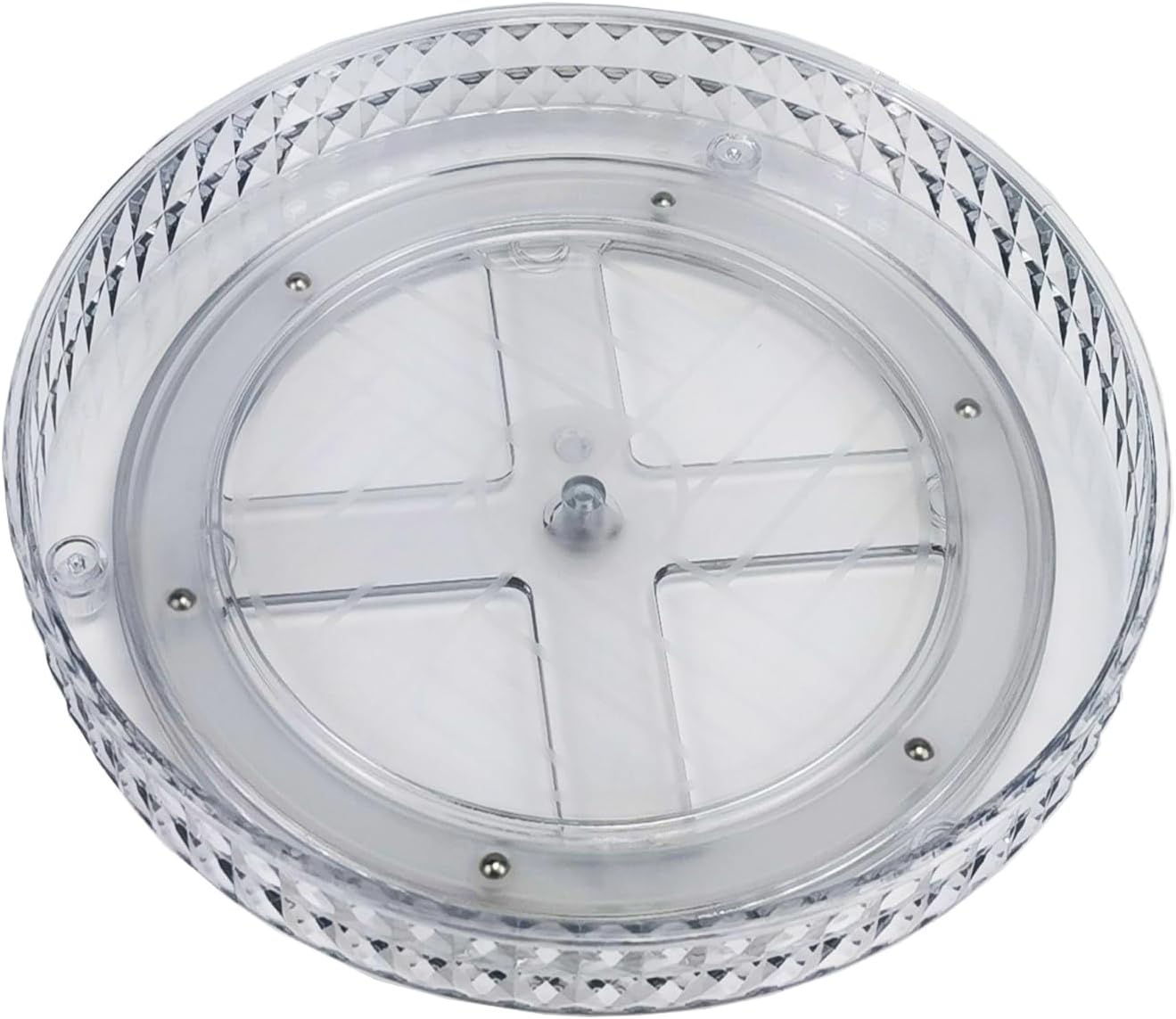 - 【Optimized Design Upgrade】: 1.The double-layer design saves storage space and enhances the daily load-bearing capacity with a sturdy bracket. The space between the two layers can accommodate items up to 7.1 inches. 2.The diamond pattern of the lazy Susan's appearance is simple yet elegant, making it easy to match with our daily home settings. 3.The internal flat placement uses an anti-slip pattern to stabilize our items. 4.The bottom adds anti-slip foot pads to increase the friction on the bottom, making it less likely to shake during rotation.