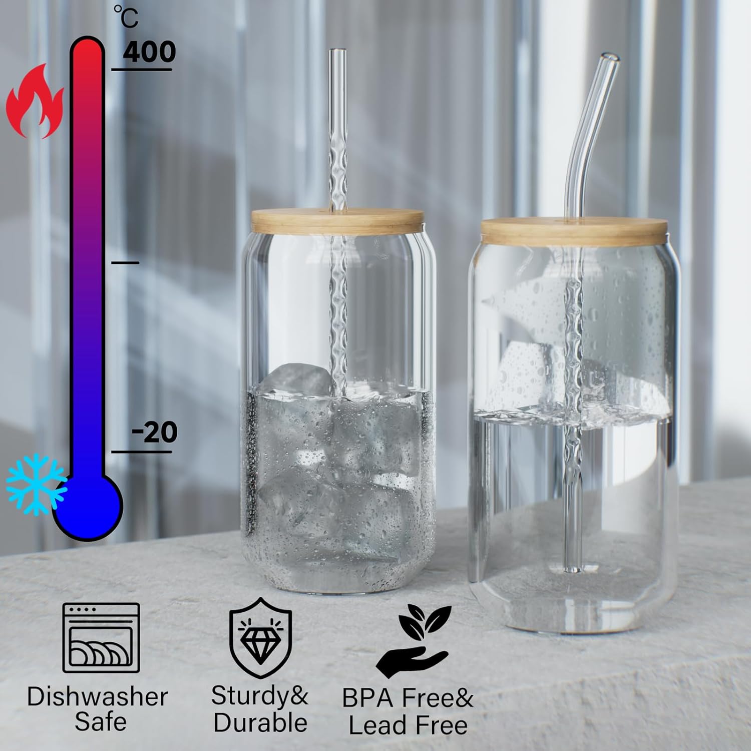 - Every straw is unique because our clear glass straws are individually handcrafted from top-notch high borosilicate glass. They're lead-free, totally non-toxic, and BPA-free. These straws for tumblers can handle any temperature, from a chilly -68°F to a scorching 753°F. Therefore, it work great for hot or ice drinking.