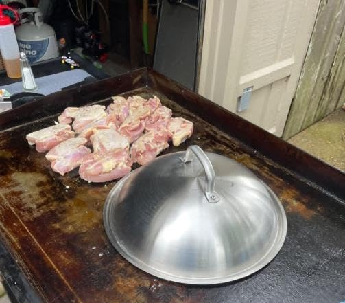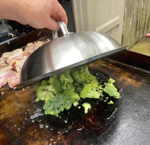Griddle Accessories Pot Wok Lids - Heavy Duty 12 Inch Round Basting Cover - Stainless Steel - Cheese Melting Dome and Steaming Cover - Best for Use in Flat Top Grill Cooking Indoor Outdoor- 2 Domes
