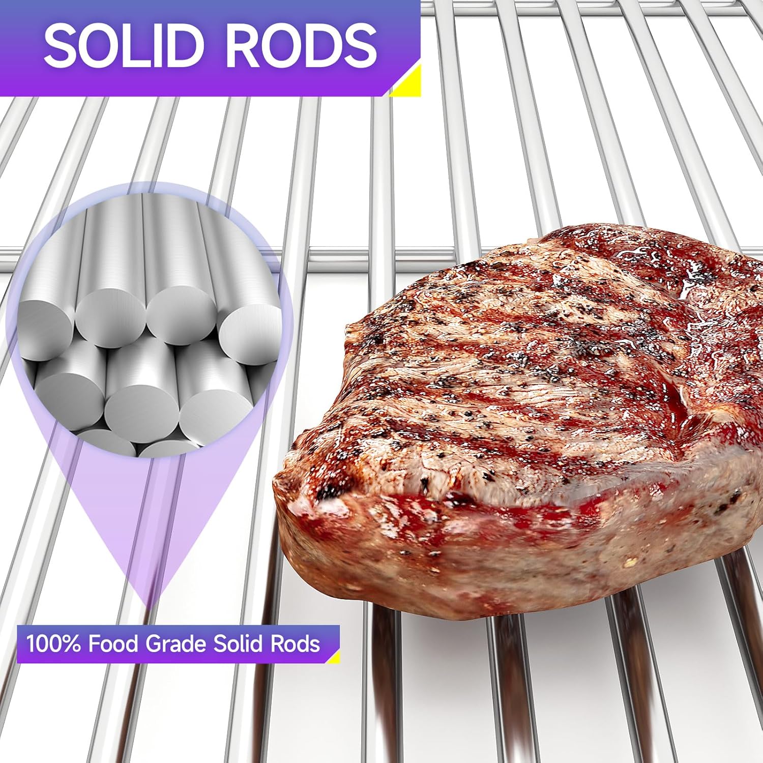 - Solid Stainless Grates: This bbq grill grate is made of premium stainless steel, perfect for your grill model. The narrow gap between each rod is orderly, and allow you to cook small food without worrying about food falling