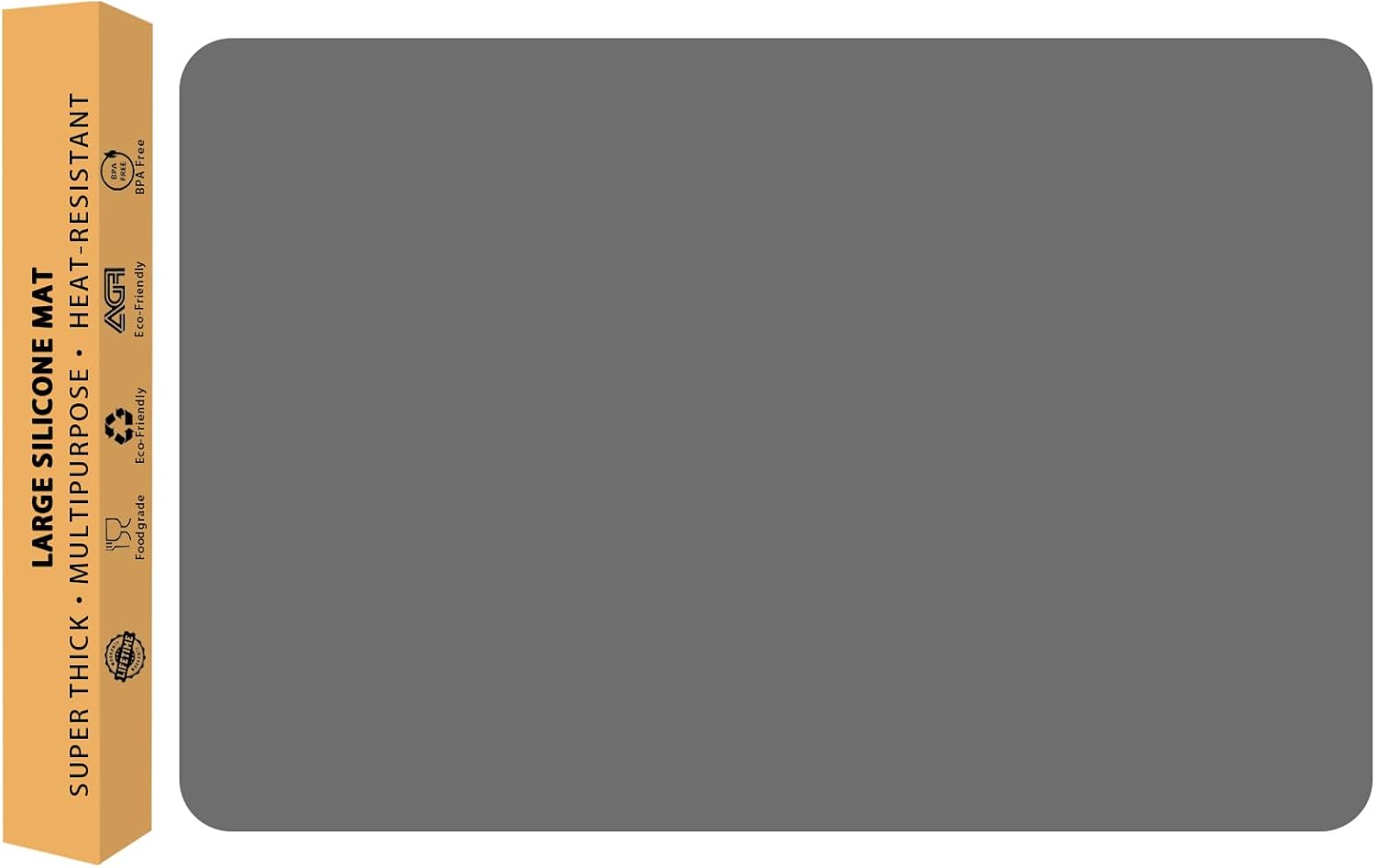 - Large & Thickened: The size of the silicone mat is 23.6" x 15.7" x0.08"(60cmx40cm). The thickened design makes it have better protection and not easy to tear up. We roll up the mats for packing to prevent permanent creases when packaged and shipped, and you will no longer suffer from mat creases.