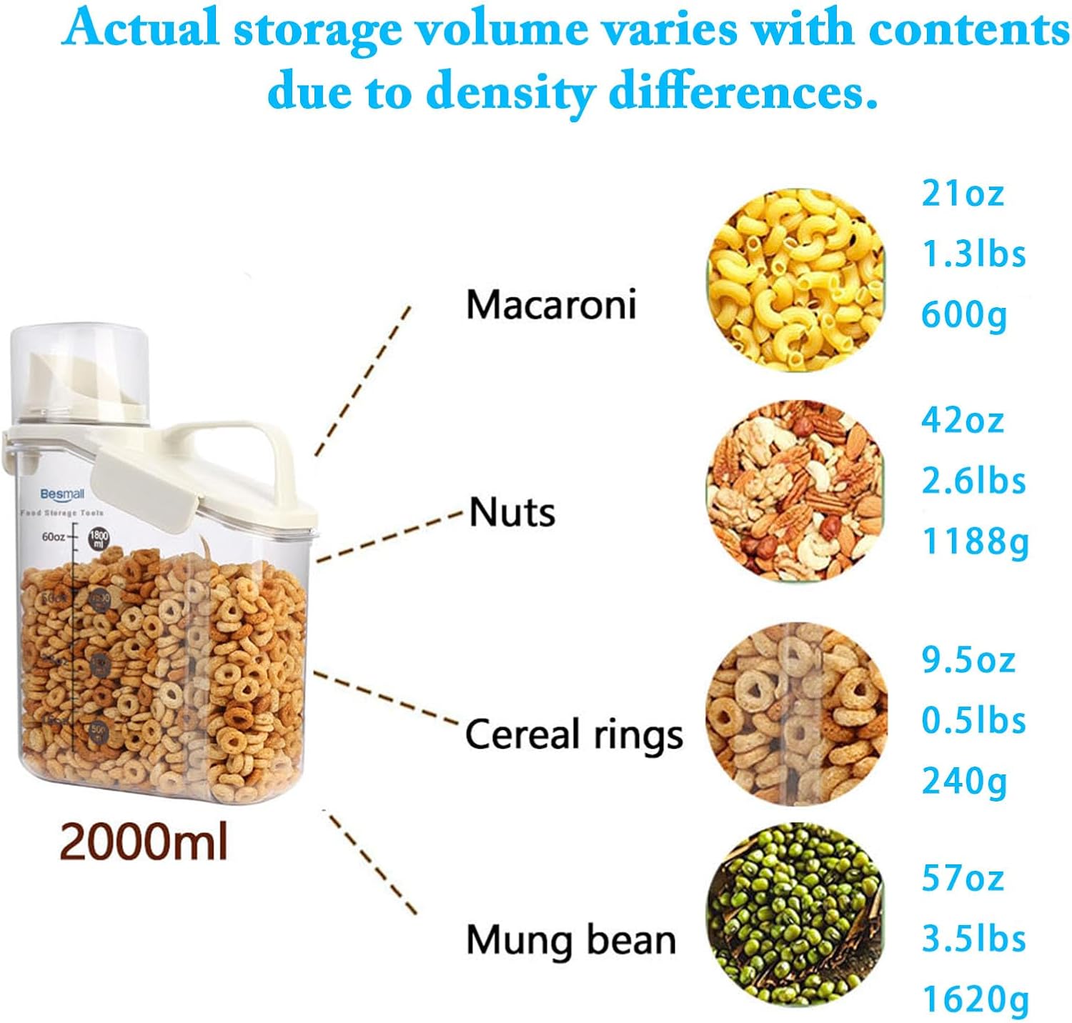 Cereal Containers Storage,2L Airtight Large Dry Food Storage Containers with Pouring Spout, Measuring Cup for Flour and Grain,BPA Free Plastic Dispenser ((1pcs) White-67oz)