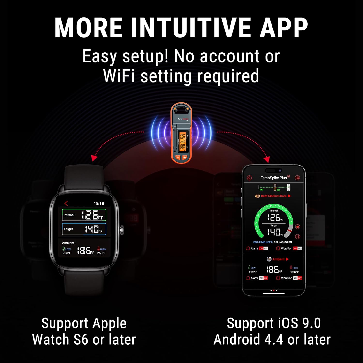 - 【Easier to Monitor】By directly displaying real-time temps on the Booster, this wireless meat thermometer for grilling and smoking allows you to check the temp without having to pull out your phone every time, especially when you're busy at preparing side dishes