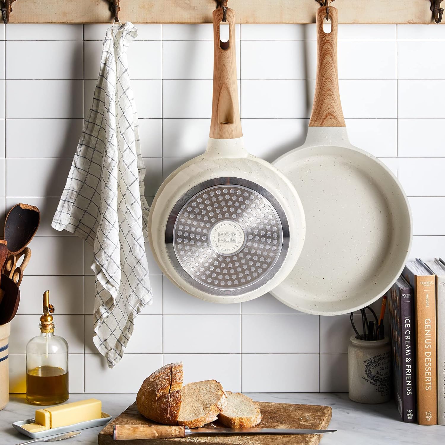- 【Ultimate Nonstick & Super Easy To Clean】A top level, harder nonstick granite, it provides at least 8x extra nonstick durability, keeping food sliding smoothly. Being an enjoy to both cooking and cleaning, just a little wipe. YIIFEEO pan set keeps stubborn stains out of your life and keeps your passion for cooking.