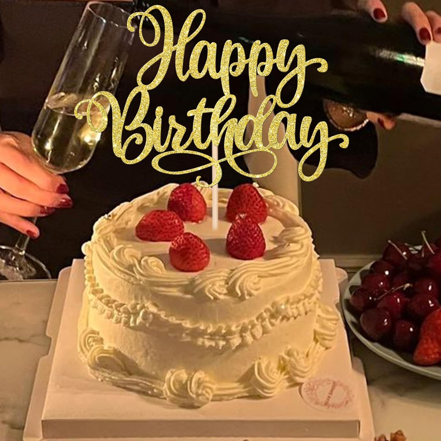 1 PCS Happy Birthday Cake Topper Glitter Happy Birthday Cake Pick Bunting Decor for Anniversary Celebrating Happy Birthday Party Cake Decorations Supplies Gold