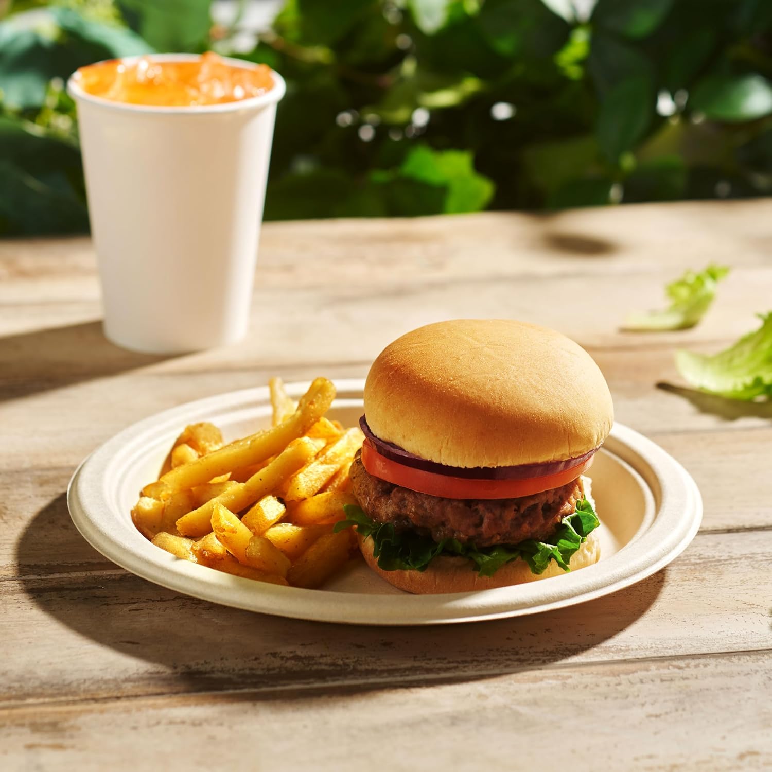 - Made of durable high quality bagasse sugarcane fiber which makes the recycled paper plates 100% compostable and biodegradable, suitable for composting and easy disposal. Safe natural chemical-free unbleached authentic brown color Kraft paper plates