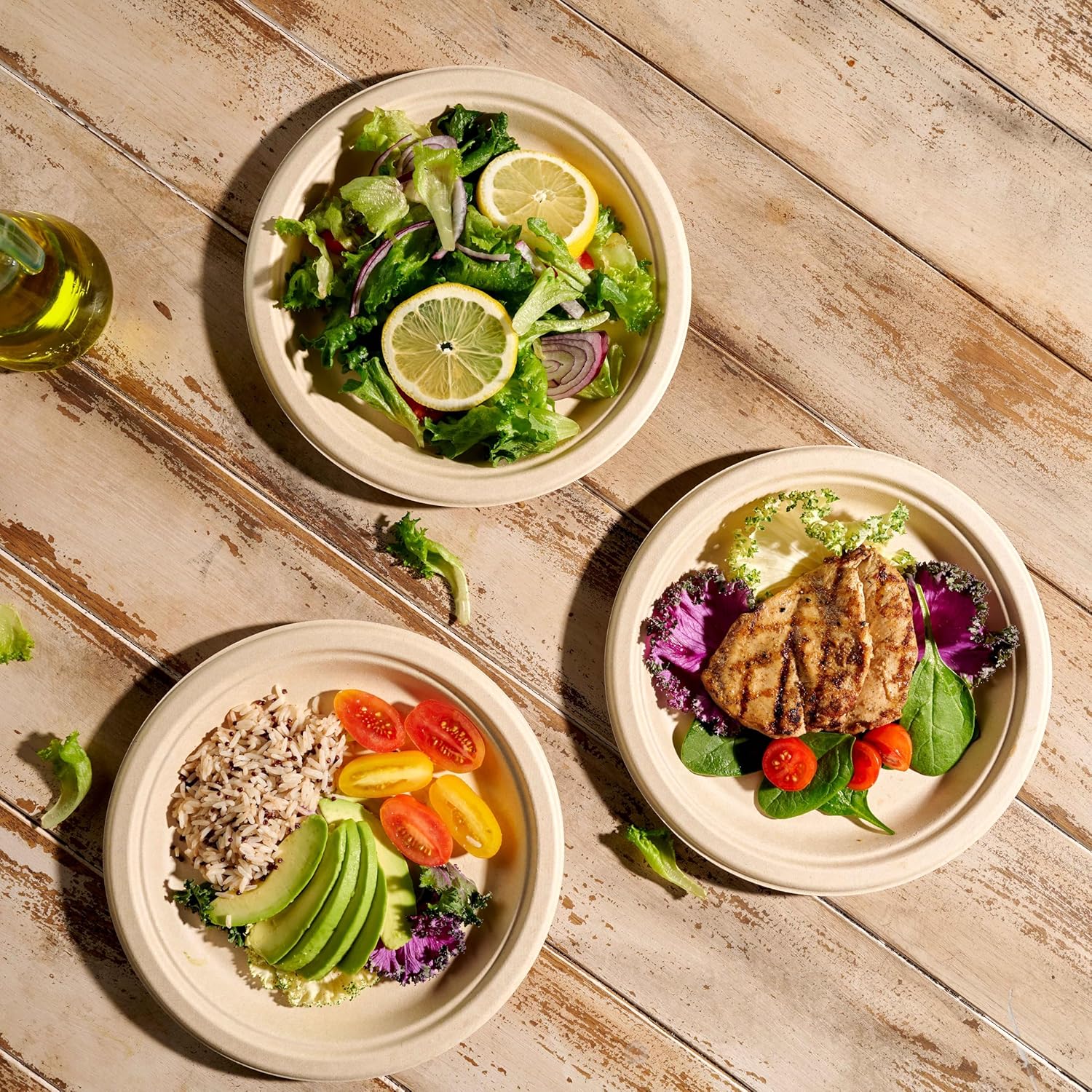 - Premium quality heavy duty disposable plates with no plastic or wax lining. Designed with superior strength, it is cut-resistant and leak-resistant. These brown paper plates are perfect for serving hot or cold food. Safe to use in the microwave